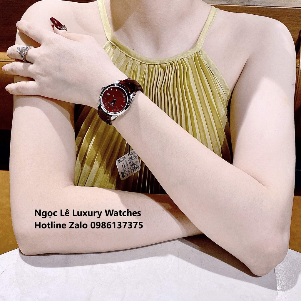 Đồng Hồ Tissot Nữ Dây Da Đỏ Rượu Vang Size 32mm - Tissot Couturier Quartz