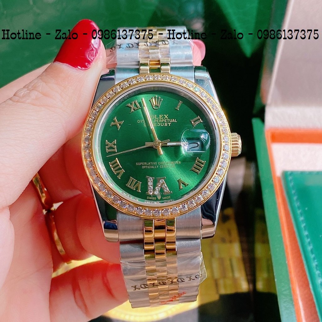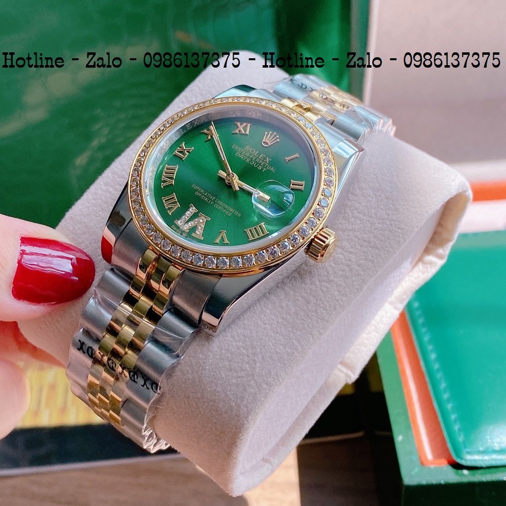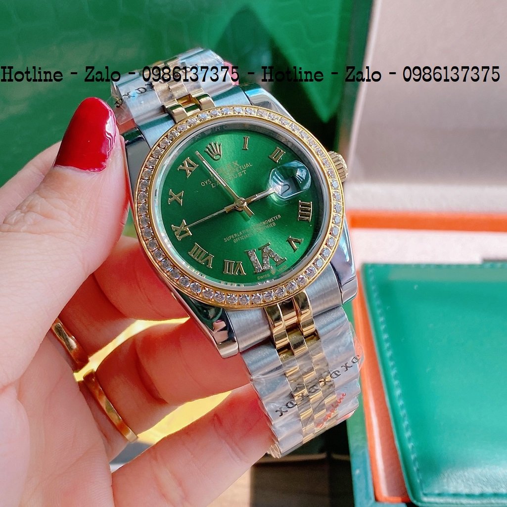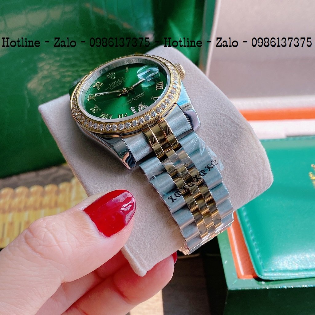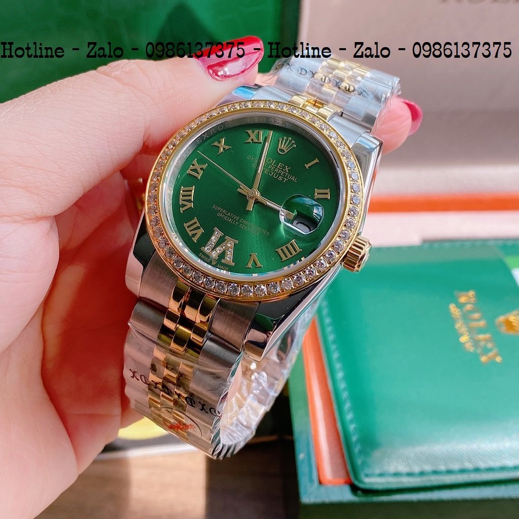 - Đồng Hồ Unisex Rolex Viền Đá Dây Demi Mặt Green 36mm