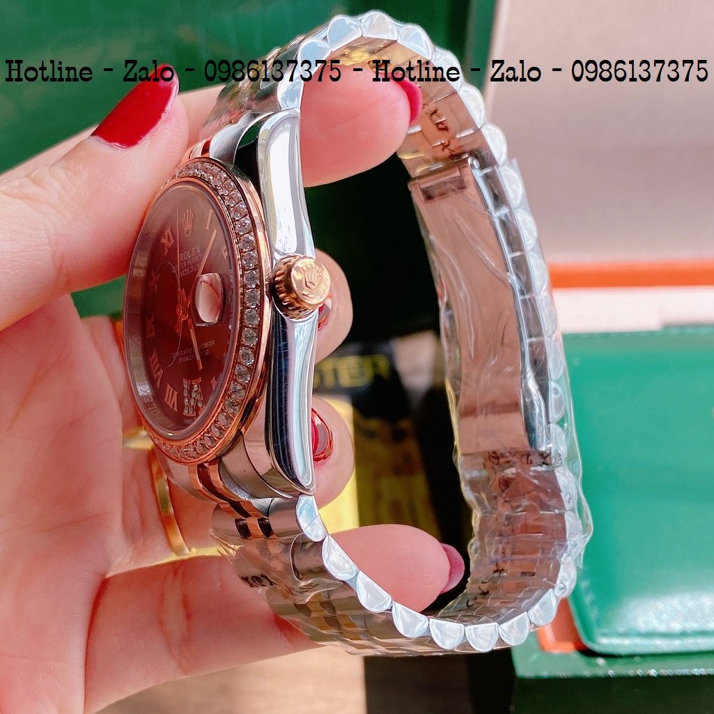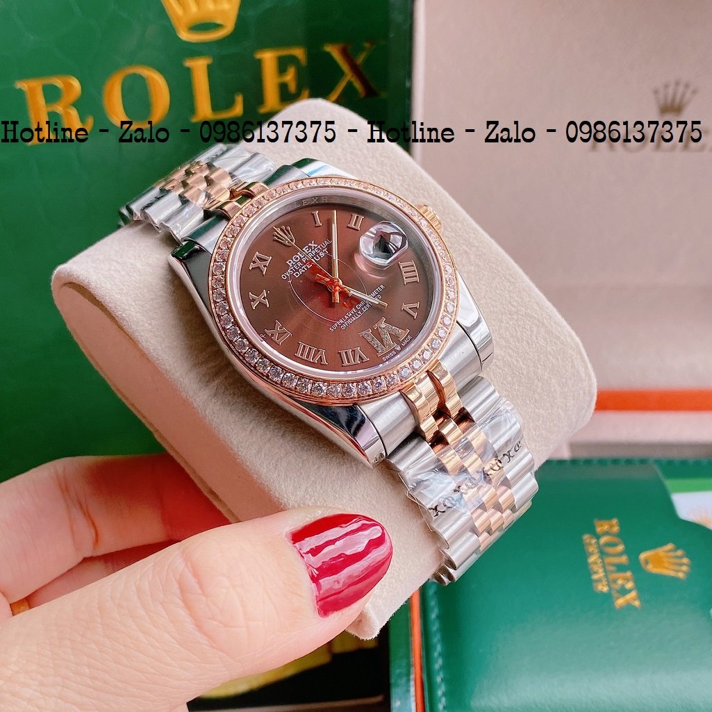 Đồng Hồ Unisex Rolex Viền Đá Dây Demi Mặt Nâu 36mm