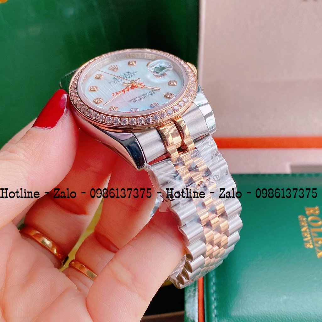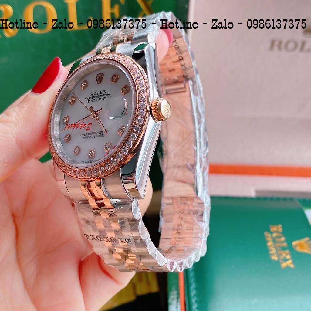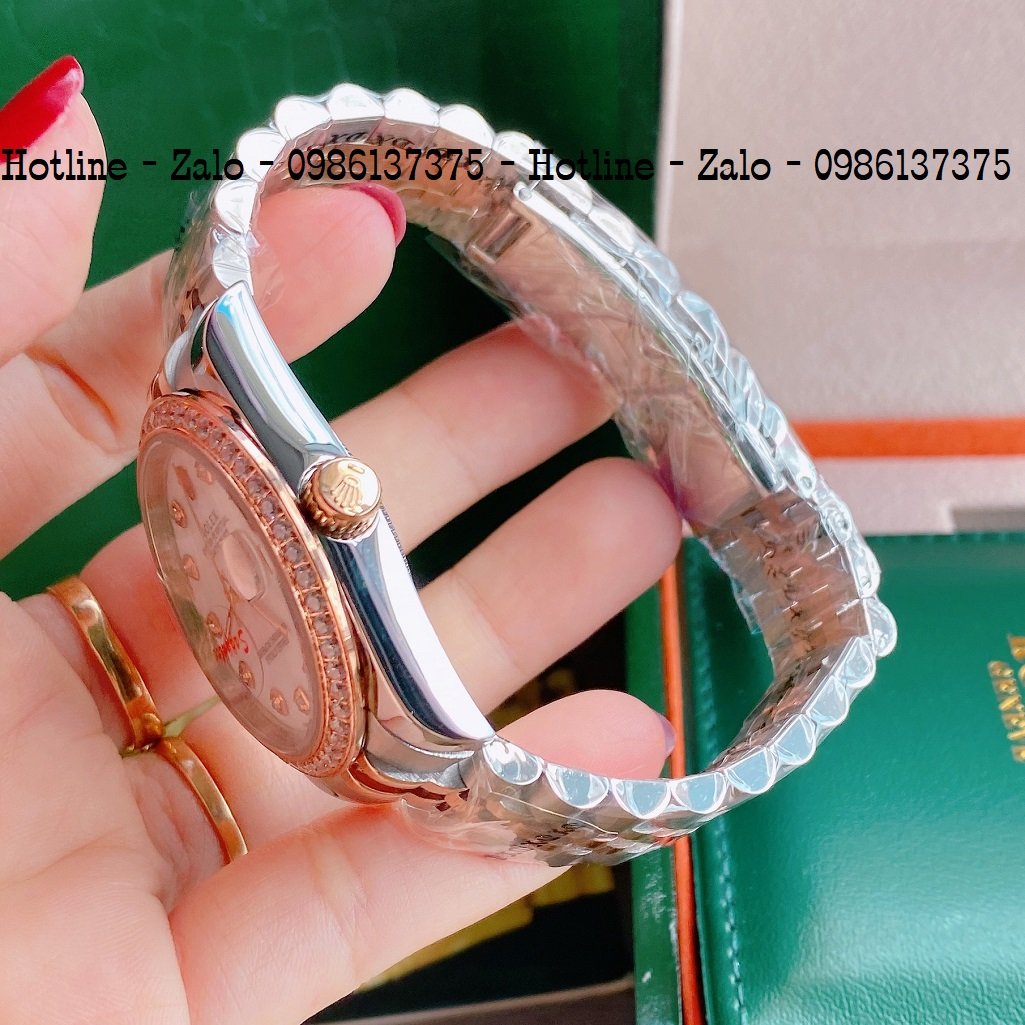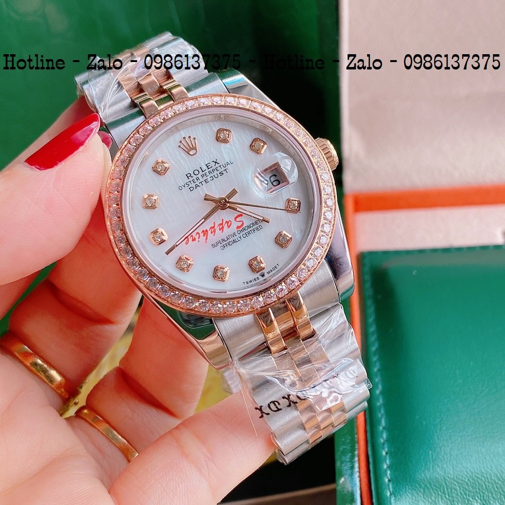 - Đồng Hồ Unisex Rolex Viền Đá Dây Demi Mặt Trắng Ngọc 36mm