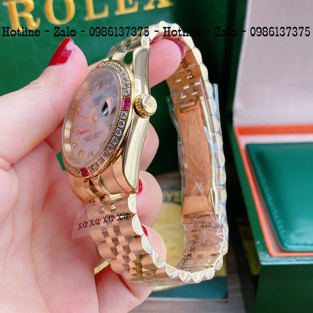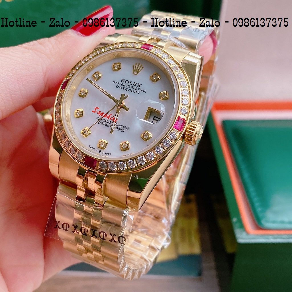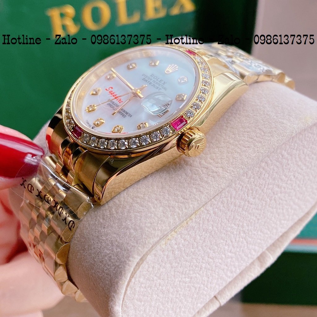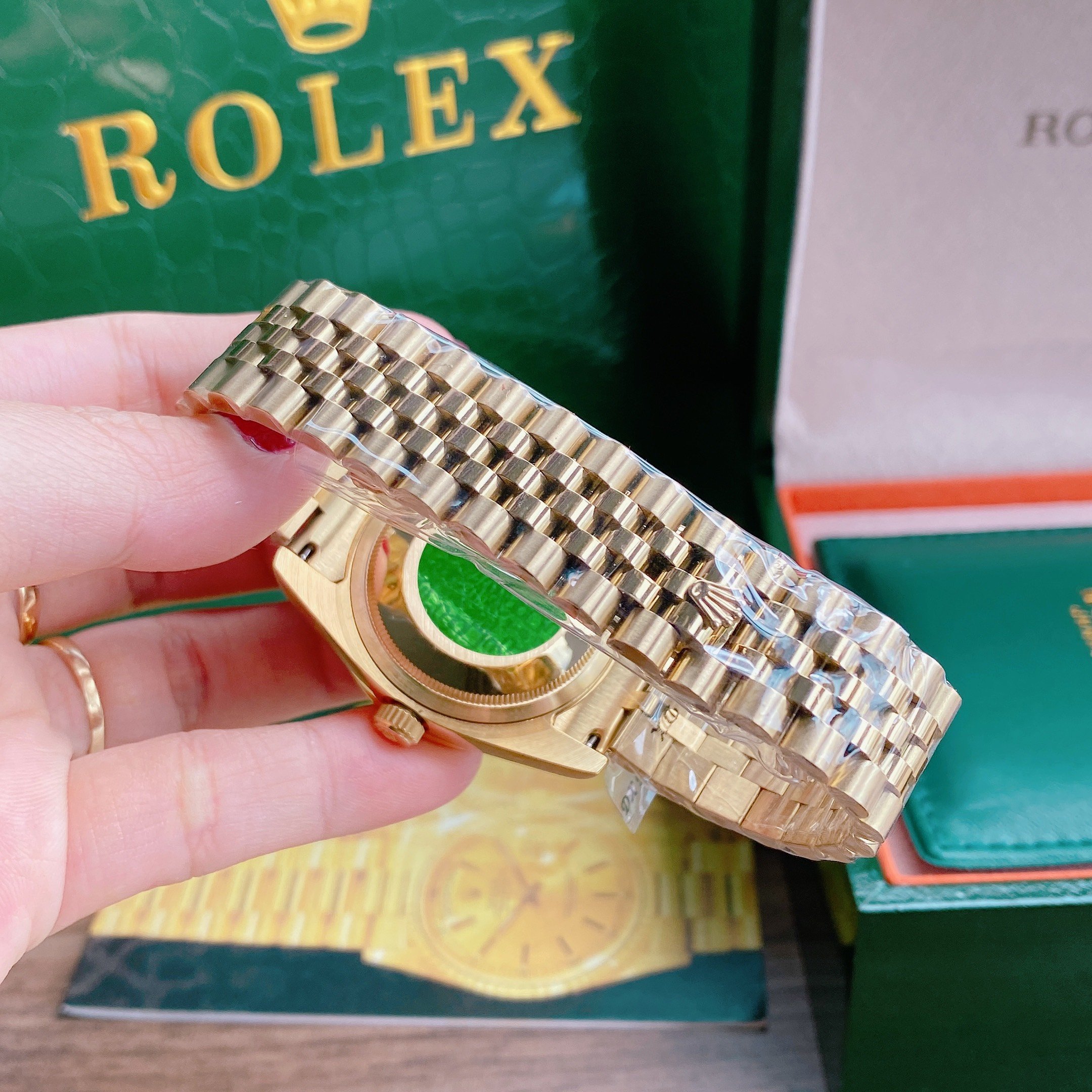 - Đồng Hồ Unisex Rolex Viền Đá Dây Vàng Mặt Trắng Ngọc 36mm