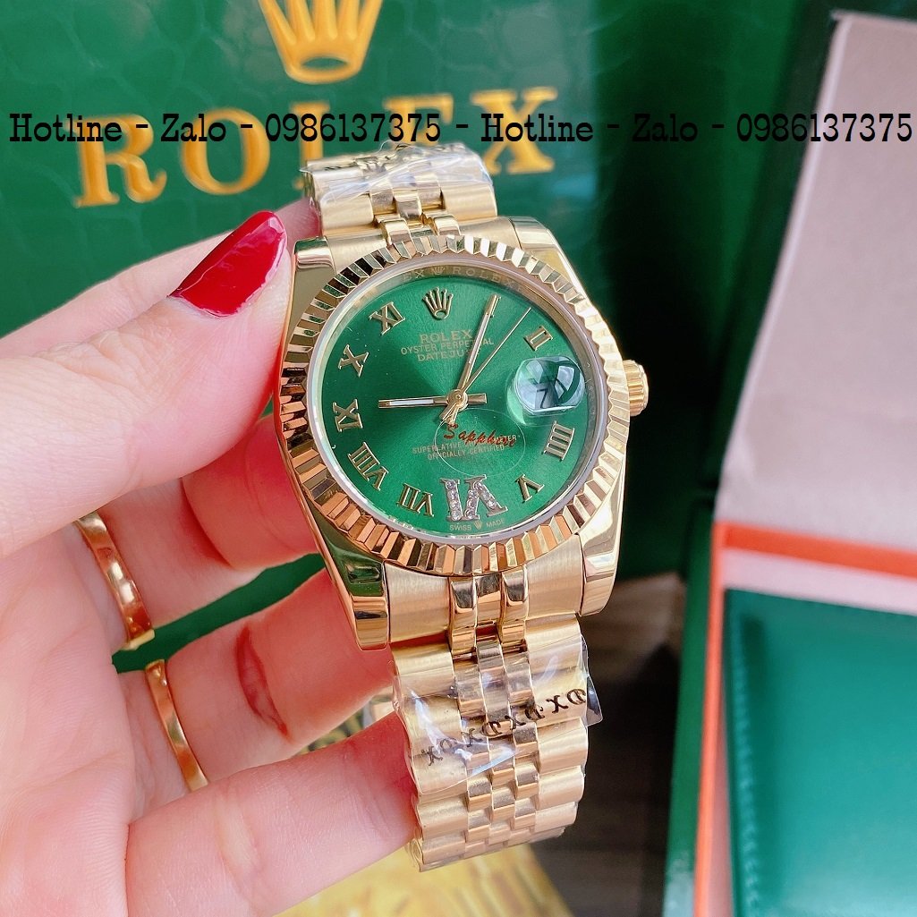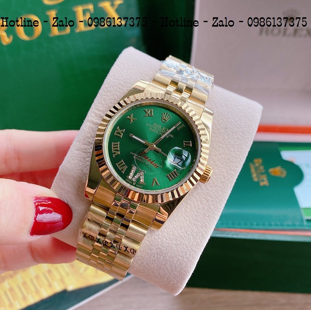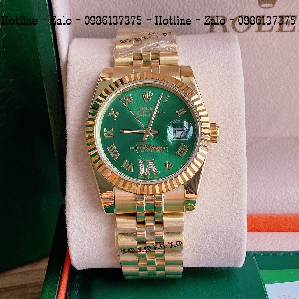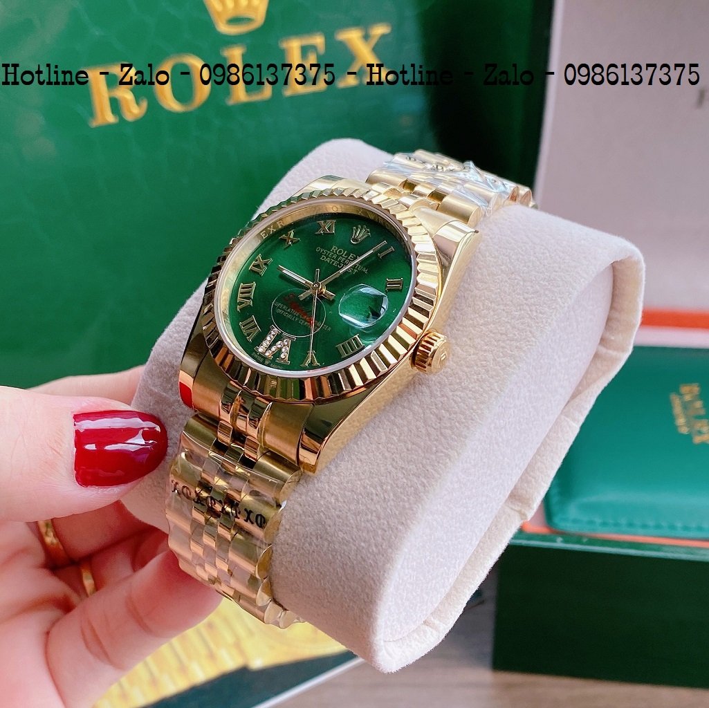 - Đồng Hồ Unisex Rolex Viền Khía Dây Vàng Mặt Green 36mm