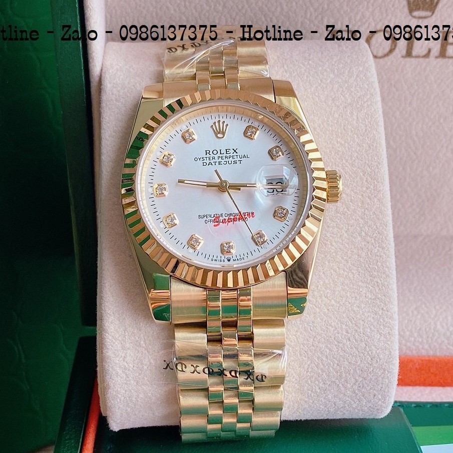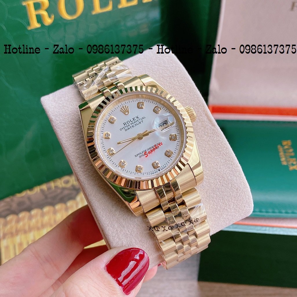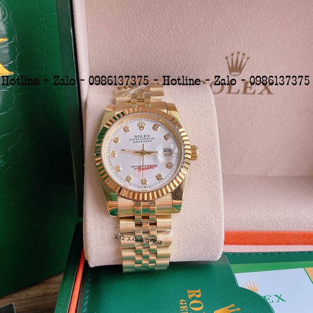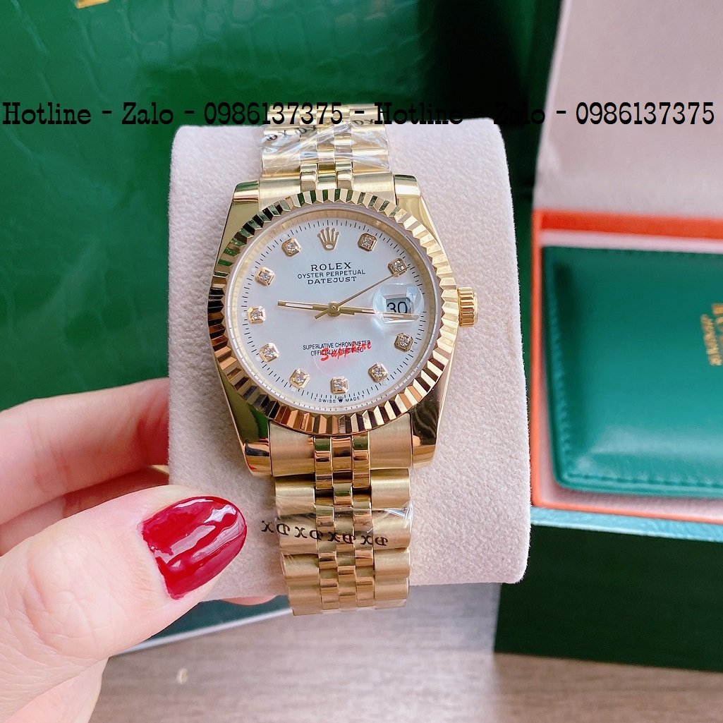 - Đồng Hồ Unisex Rolex Viền Khía Dây Vàng Mặt Trắng 36mm
