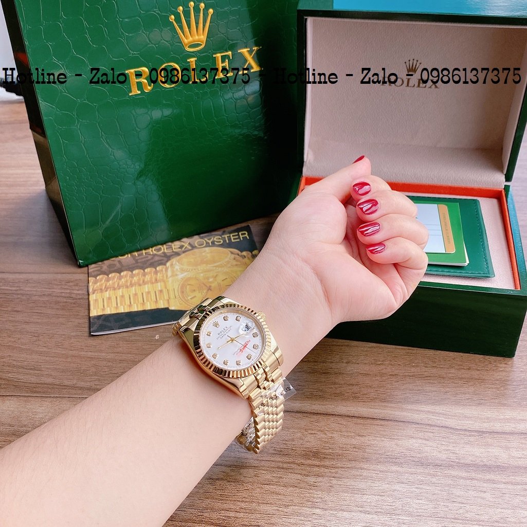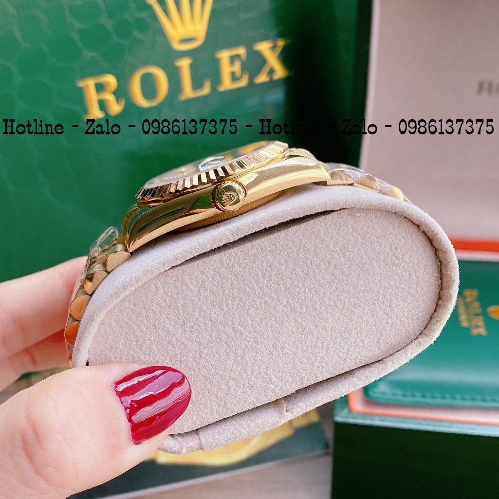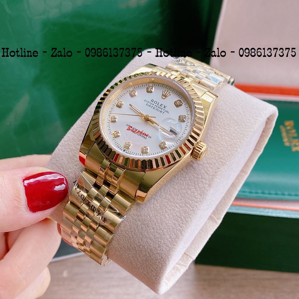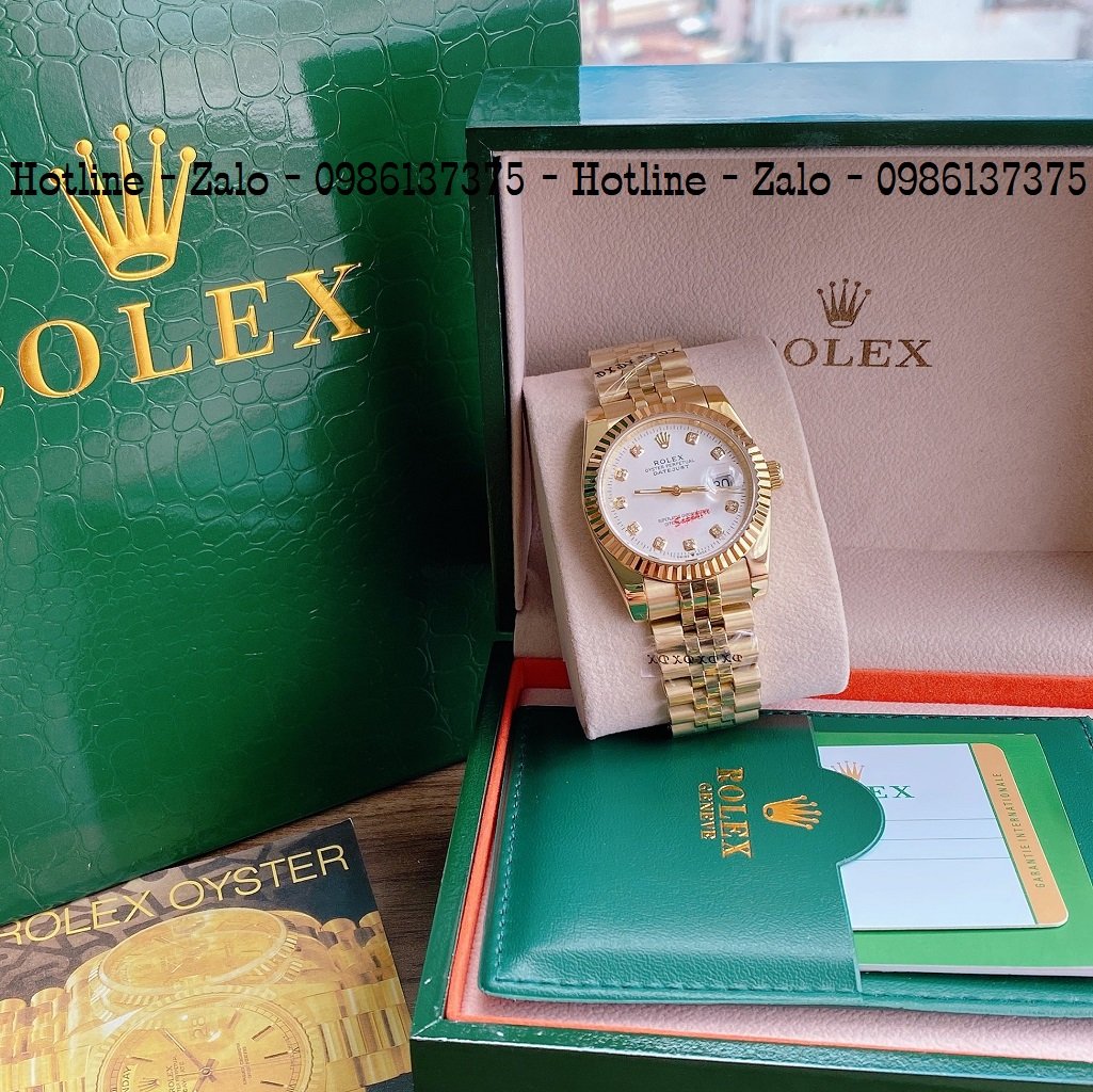 - Đồng Hồ Unisex Rolex Viền Khía Dây Vàng Mặt Trắng 36mm