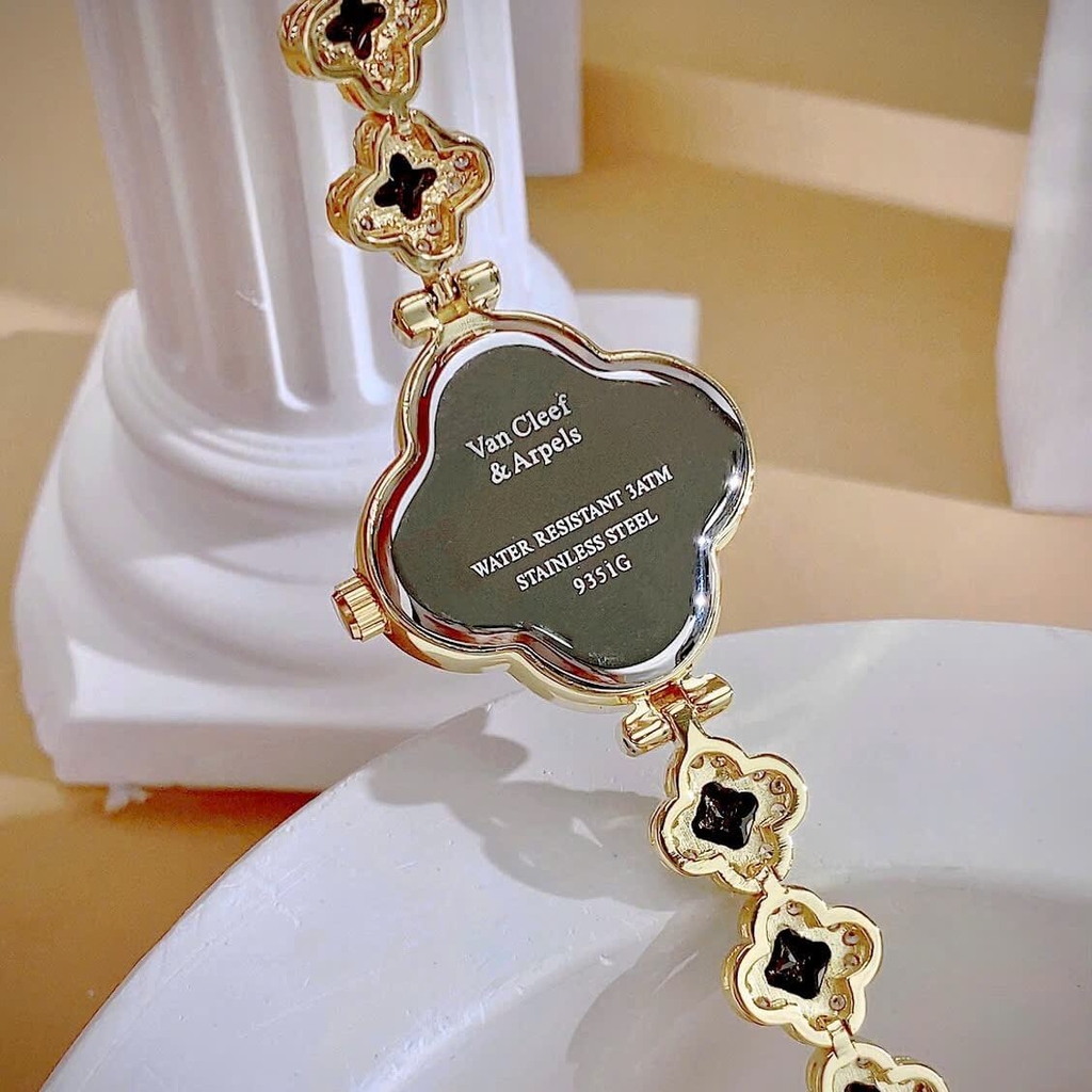 Hình ảnh Đồng Hồ Van Cleef & Arpels Nữ Dây Lắc Tay Cỏ 4 Lá Vỏ Vàng Hoa Đen Size 27mm