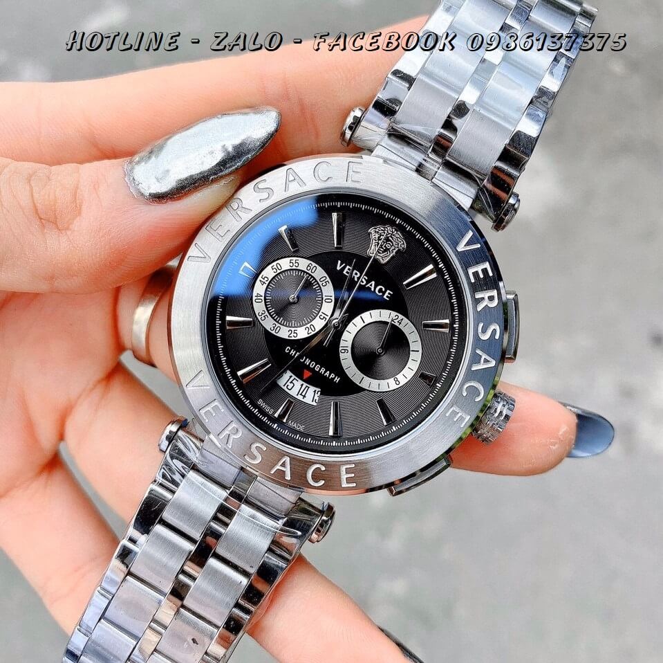 Đồng Hồ Versace Aion Nam Bạc Mặt Đen 6 Kim 44mm