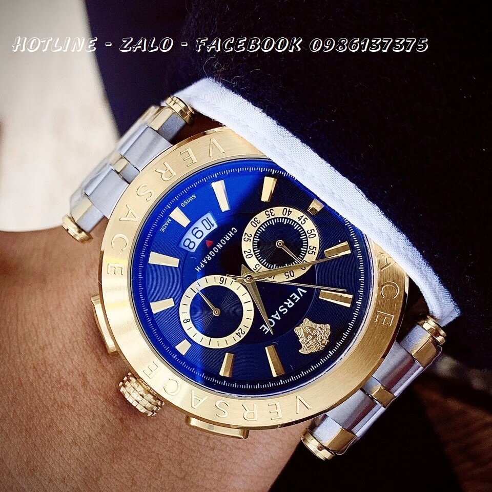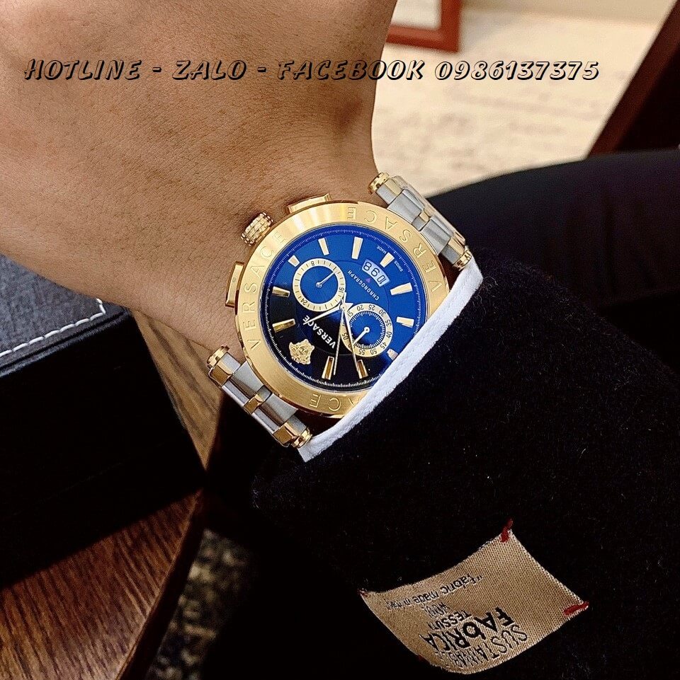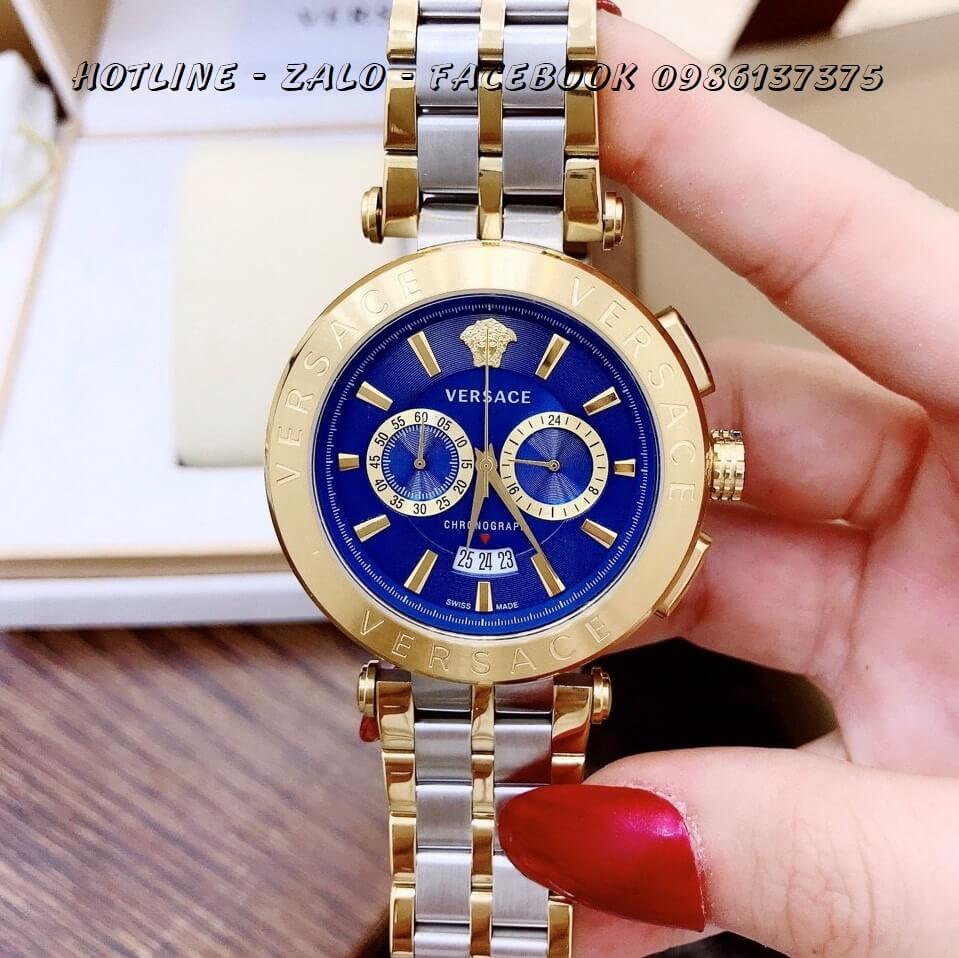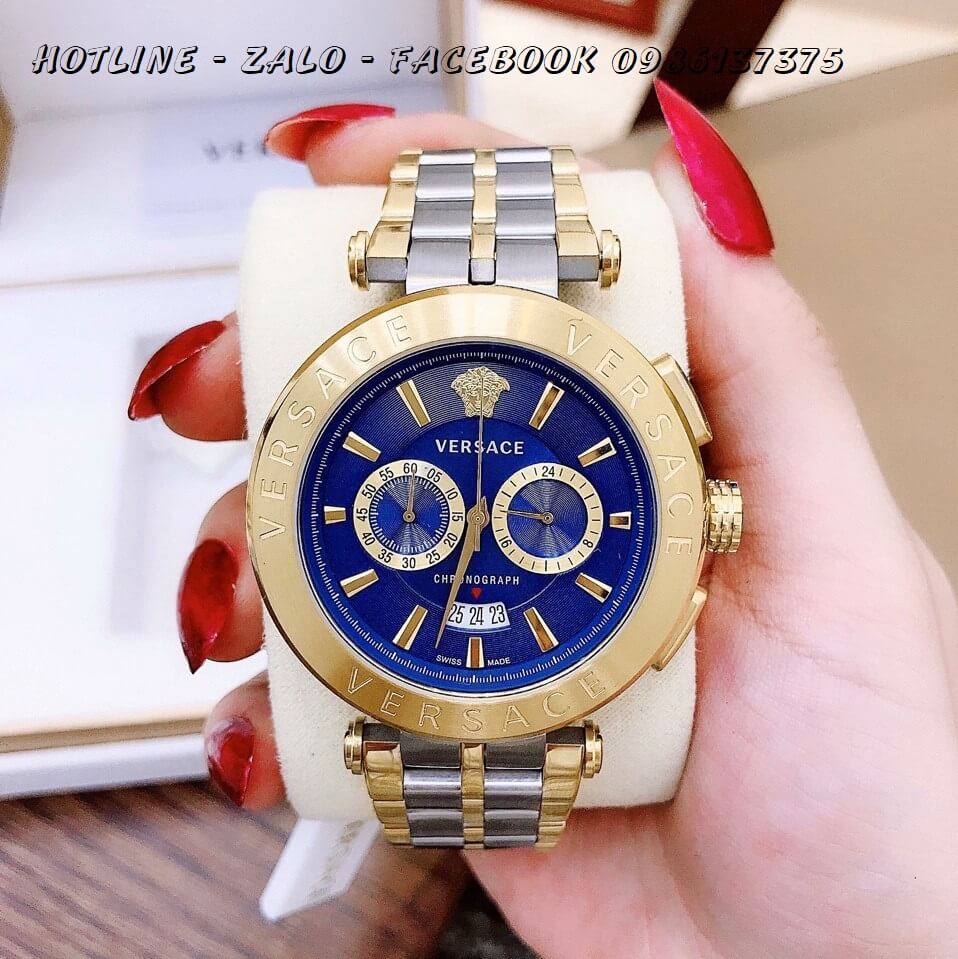 Đồng Hồ Versace Aion Nam Dây Demi Mặt Xanh 6 Kim 44mm