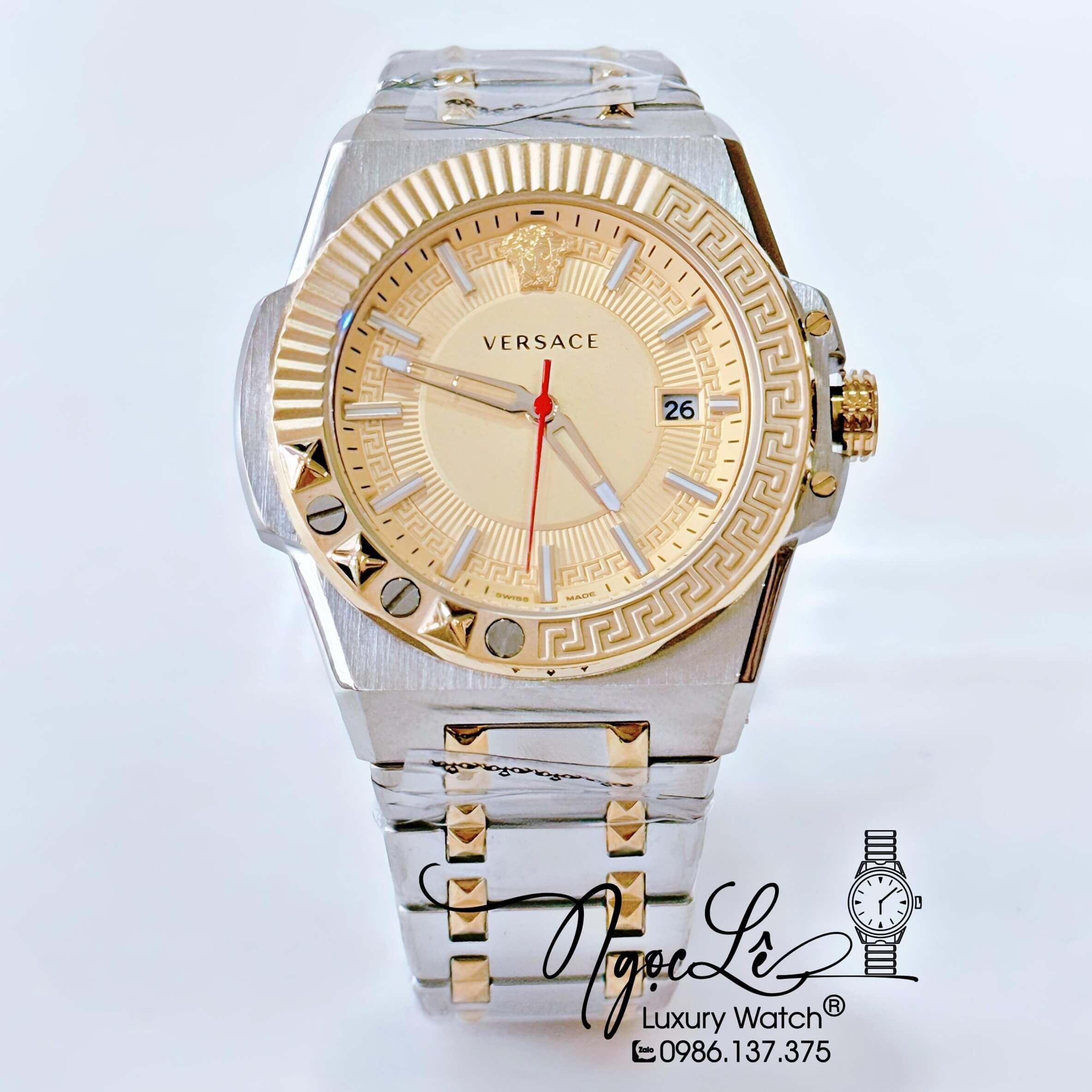 Đồng Hồ Nam Versace Greca Action Dây Kim Loại Demi Vàng Mặt Vàng Size 44mm