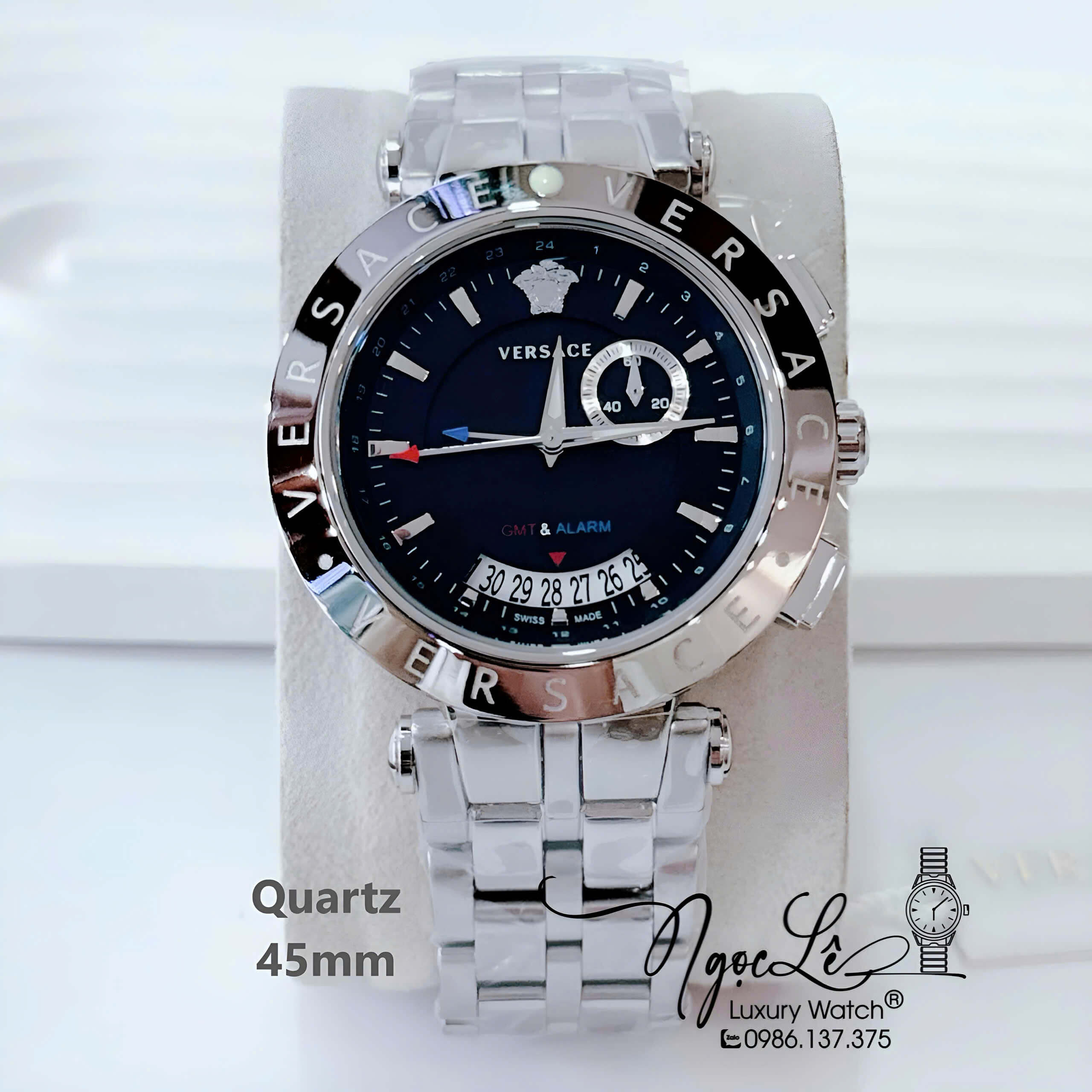 Đồng Hồ Nam Versace V-Race 5 Kim Dây Kim Loại Bạc Mặt Đen Size 45mm