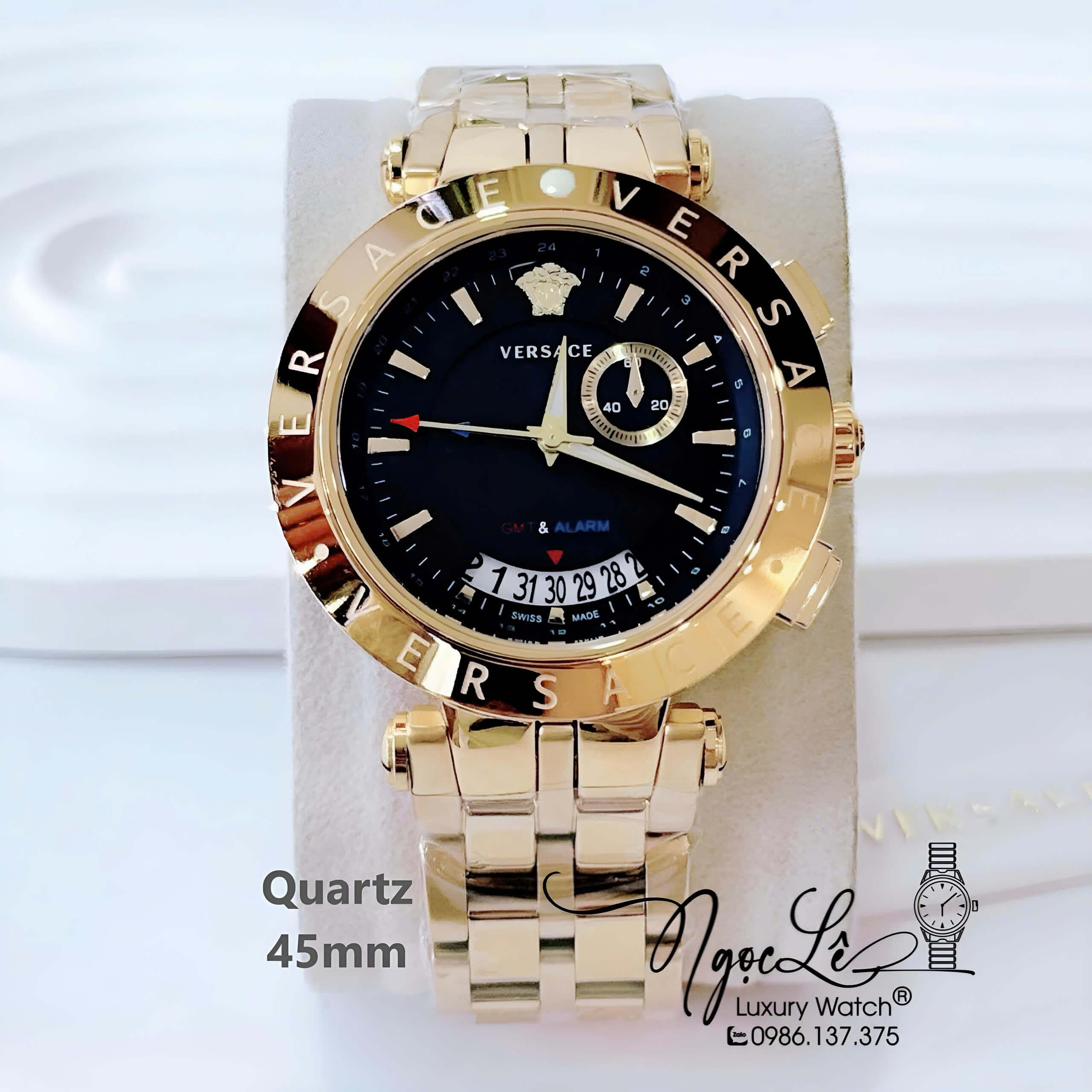 Đồng Hồ Nam Versace V-Race 5 Kim Dây Kim Loại Vàng Mặt Đen Size 45mm
