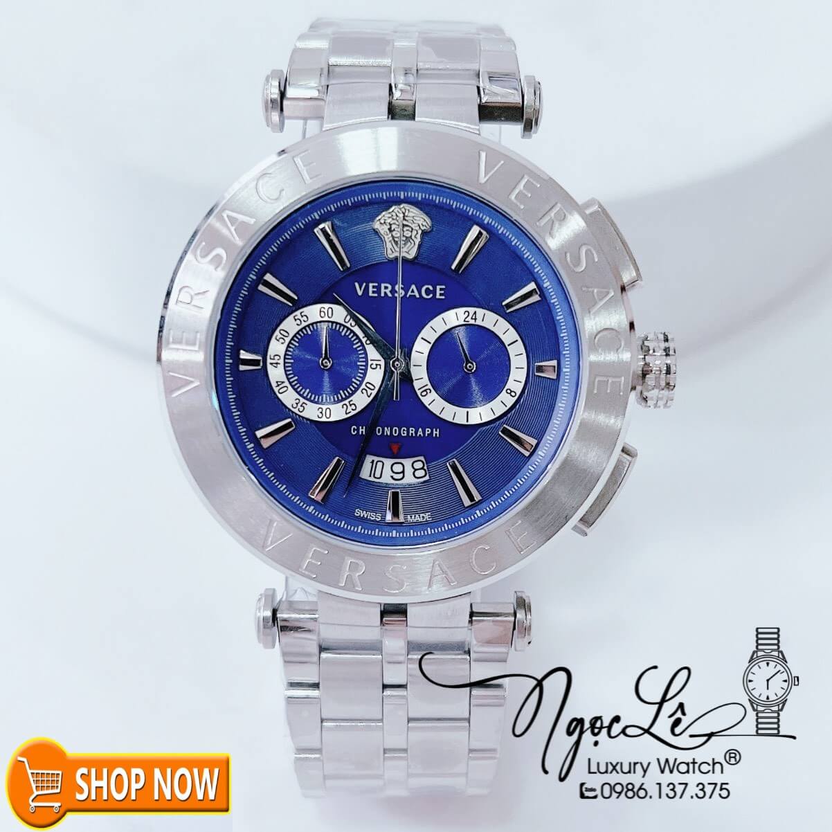 Đồng Hồ Nam Versace Aion Chronograph Dây Kim Loại Bạc Mặt Xanh Dương Size 45mm