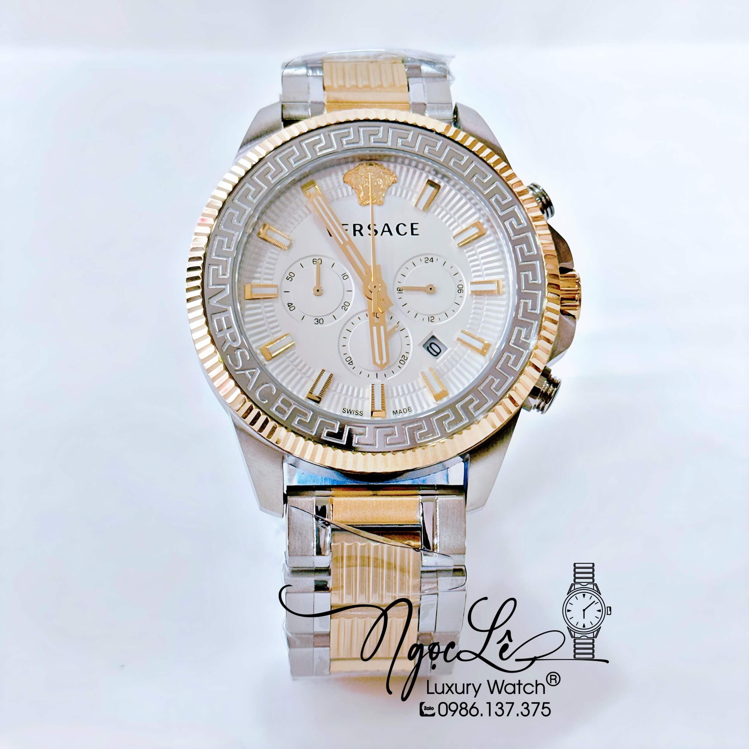 Đồng Hồ Nam Versace Greca Logo Chronograph Dây Thép Mặt Trắng Demi Size 43mm
