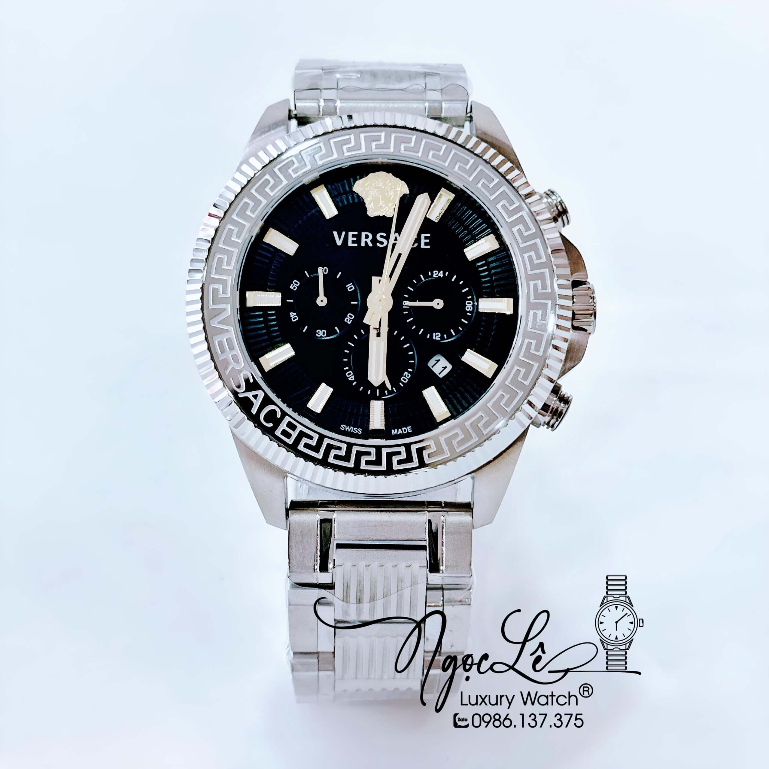 Đồng Hồ Nam Versace Greca Logo Chronograph Dây Thép Mặt Đen Silver Size 43mm