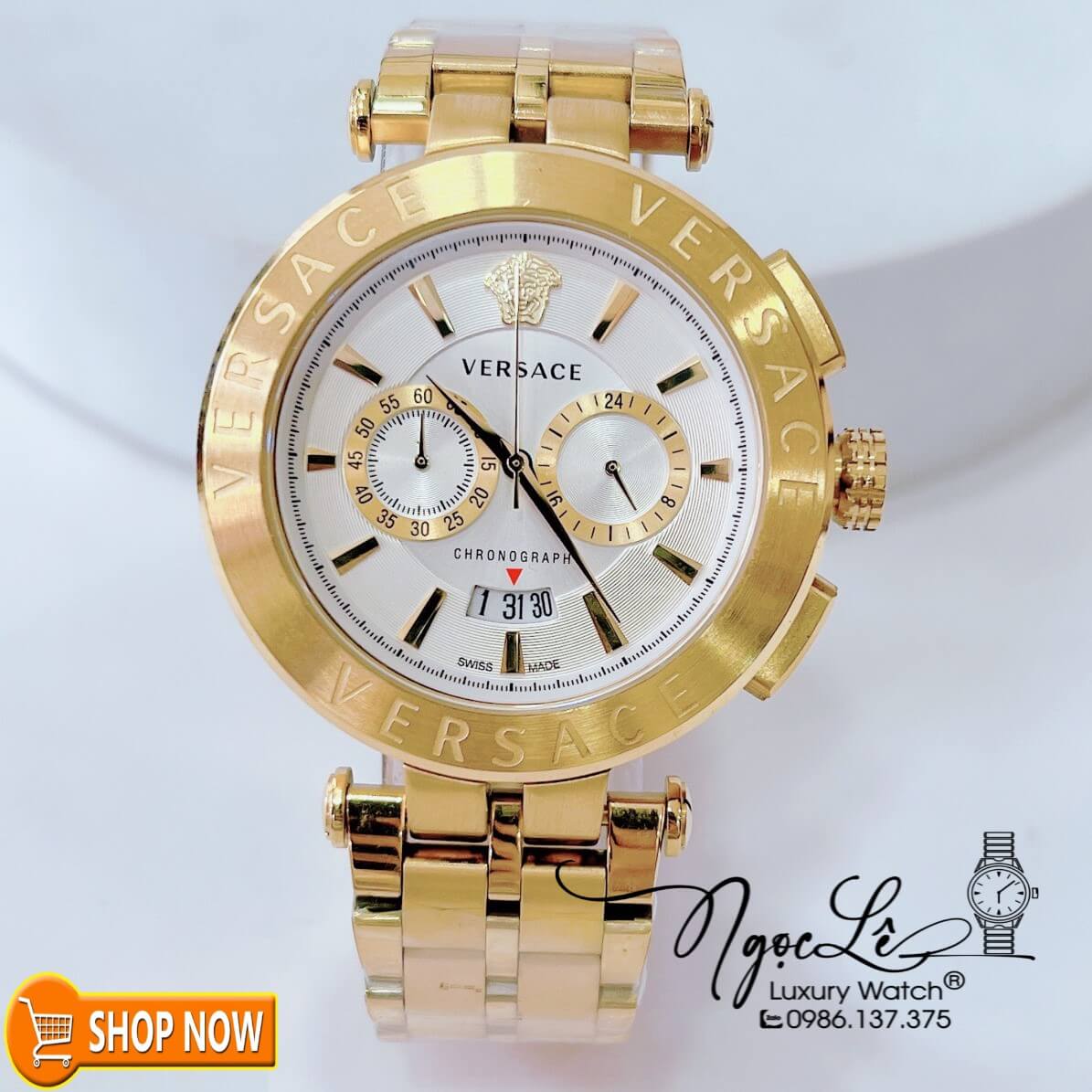Đồng Hồ Nam Versace Aion Chronograph Dây Kim Loại Vàng Mặt Trắng Size 45mm