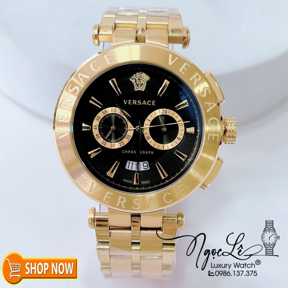 Đồng Hồ Nam Versace V-Race 5 Kim Vàng Mặt Đen 45mm