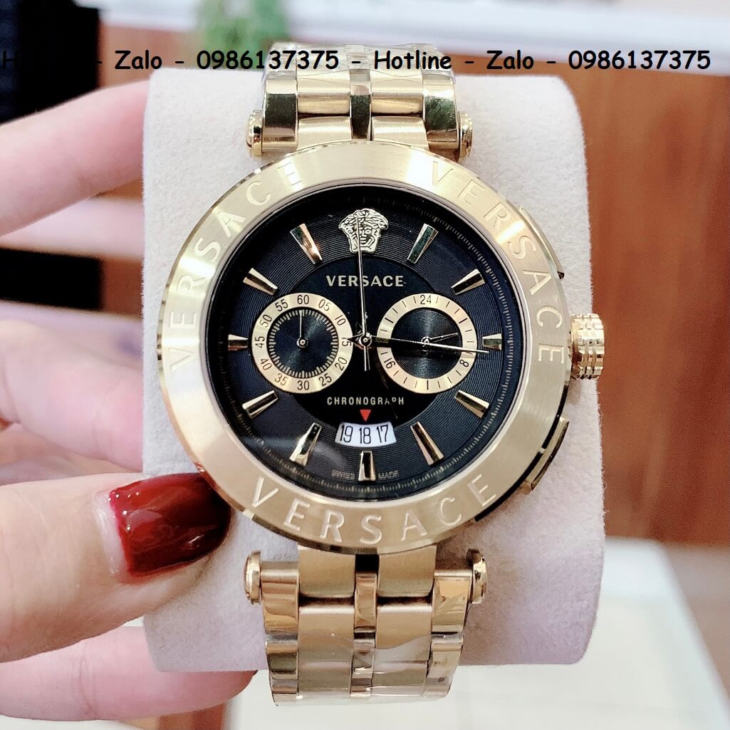 Đồng Hồ Nam Versace Aion Chronograph Dây Kim Loại Vàng Mặt Đen Size 45mm