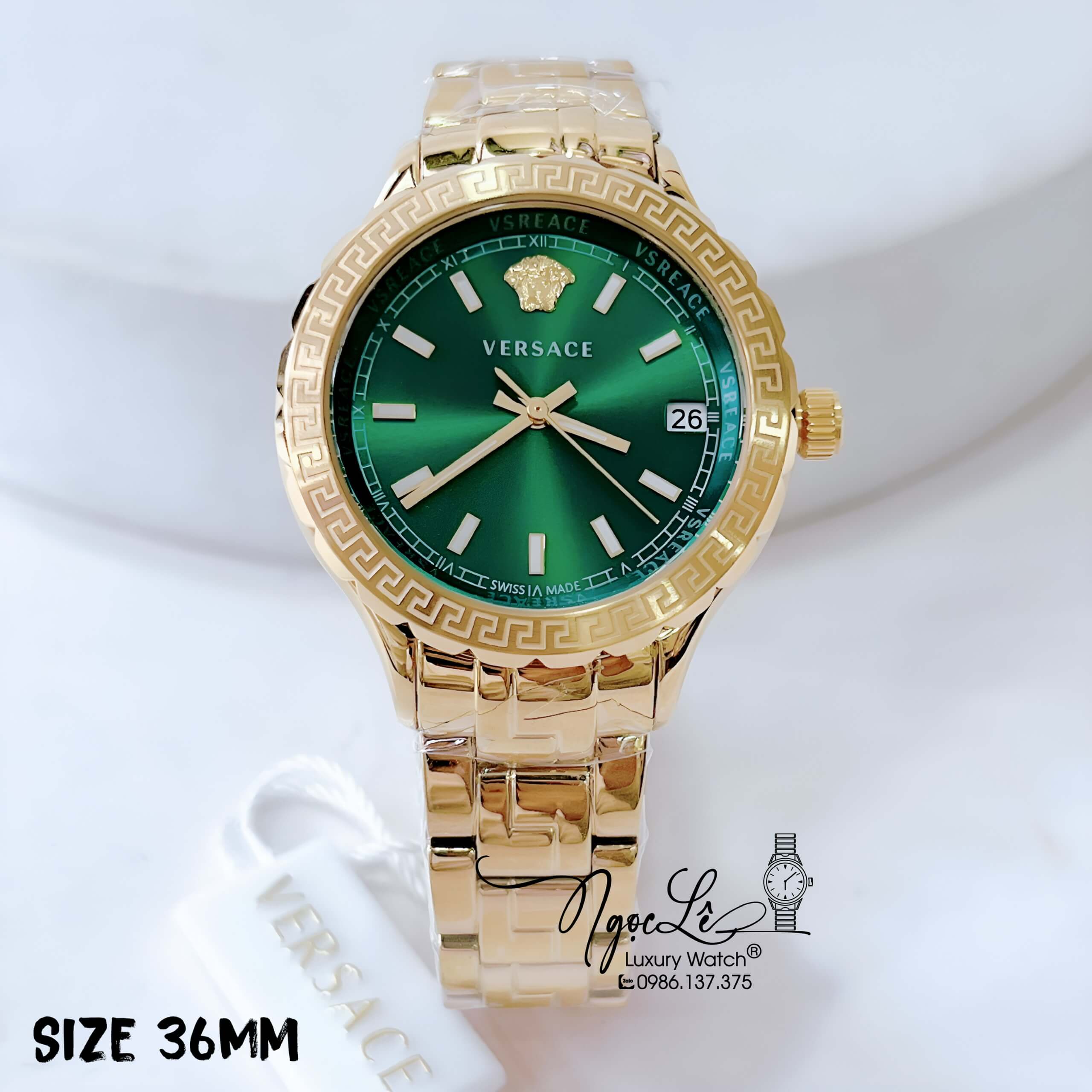 Đồng Hồ Nữ Versace Hellenyium Dây Kim Loại Vàng Mặt Xanh Lá Size 35mm Máy Thụy Sỹ