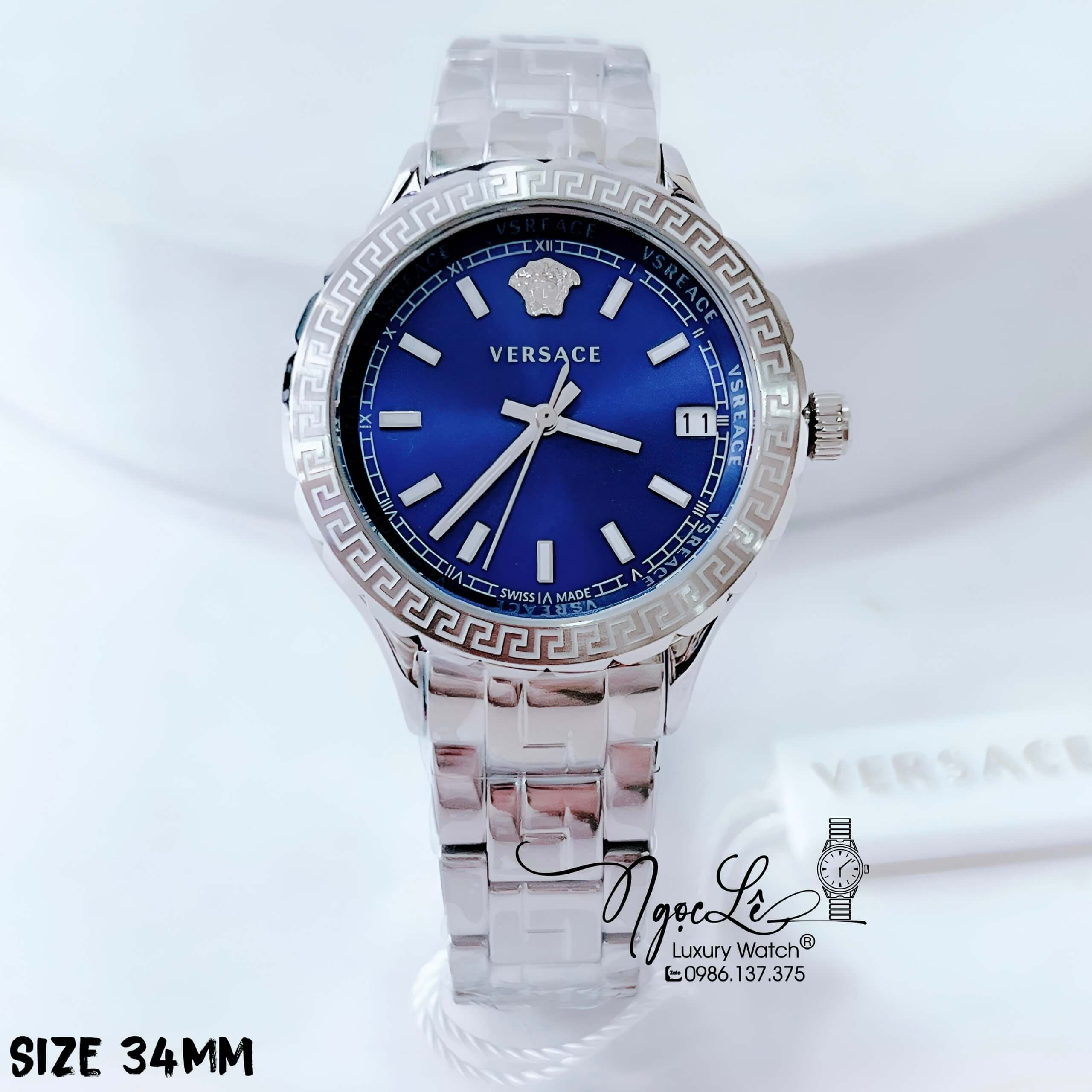 Đồng Hồ Nữ Versace Hellenyium Dây Kim Loại Bạc Mặt Xanh Dương Size 35mm Máy Thụy Sỹ