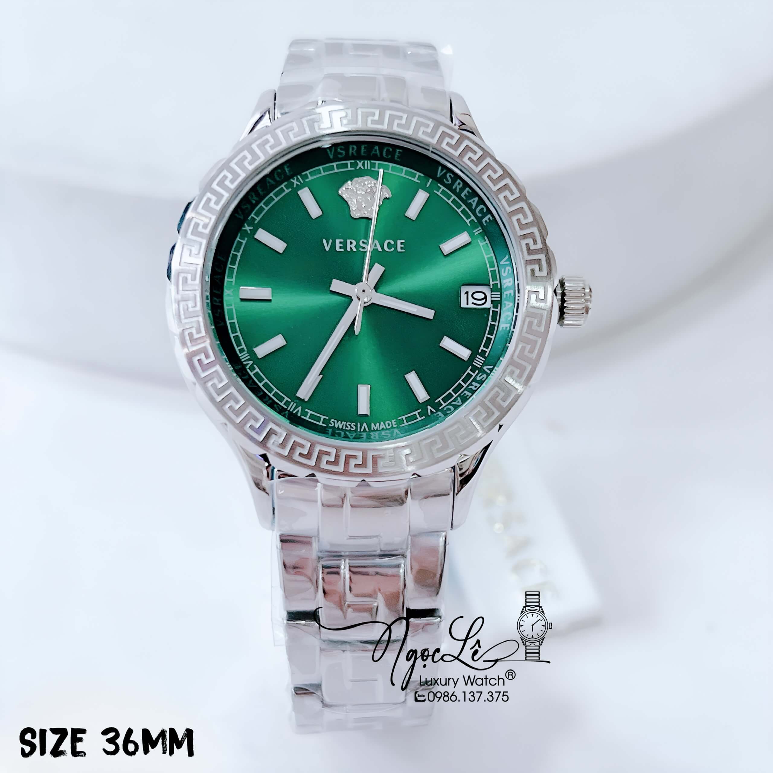 Đồng Hồ Nữ Versace Hellenyium Dây Kim Loại Bạc Mặt Xanh Lá Size 35mm Máy Thụy Sỹ