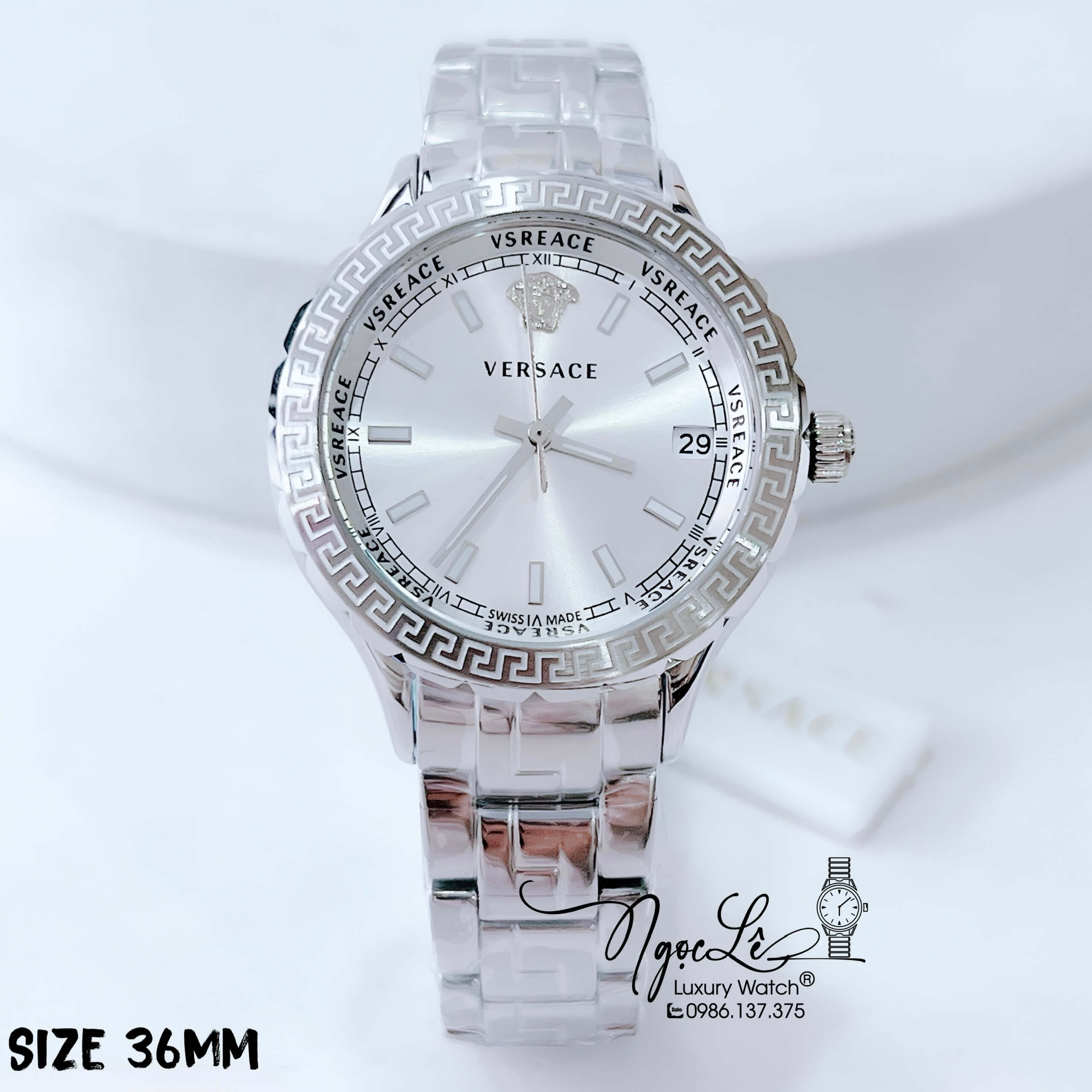 Đồng Hồ Nữ Versace Hellenyium Dây Kim Loại Bạc Mặt Trắng Size 35mm Máy Thụy Sỹ