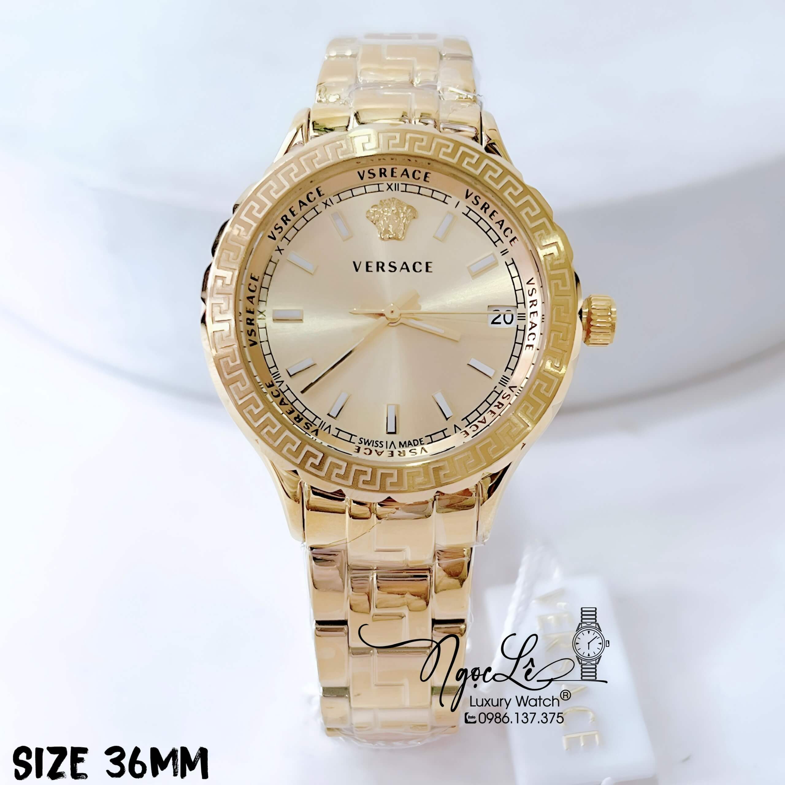Đồng Hồ Nữ Versace Hellenyium Dây Kim Loại Vàng Mặt Vàng Size 35mm Máy Thụy Sỹ