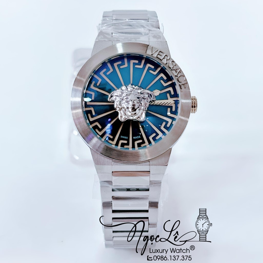 Đồng Hồ Nữ Versace Medusa Infinite Leather Dây Kim Loại Bạc Mặt Xanh Dương 36mm