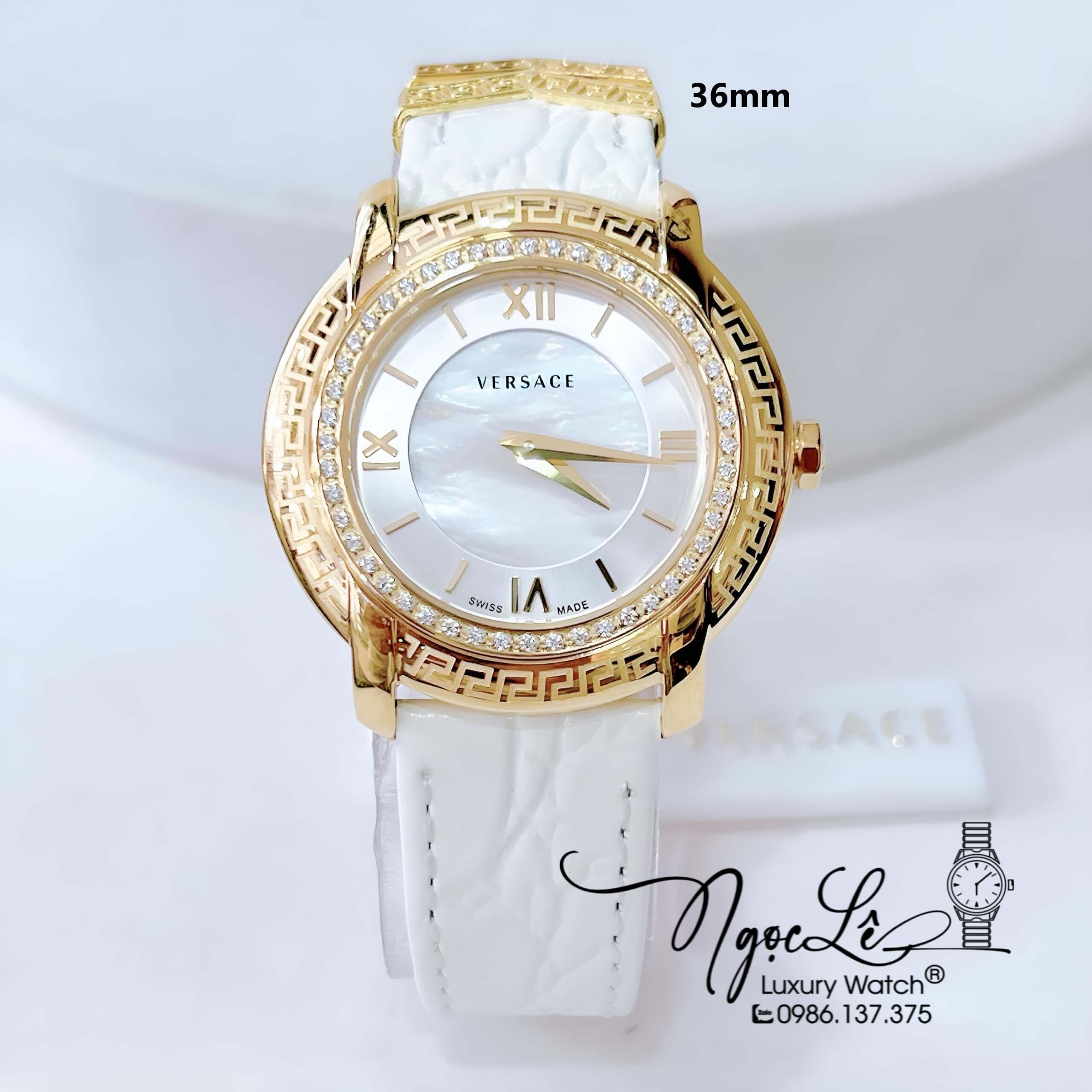 Đồng Hồ Nữ Versace DV-25 Máy Thụy Sỹ Dây Da Màu Trắng Size 36mm Đính Đá