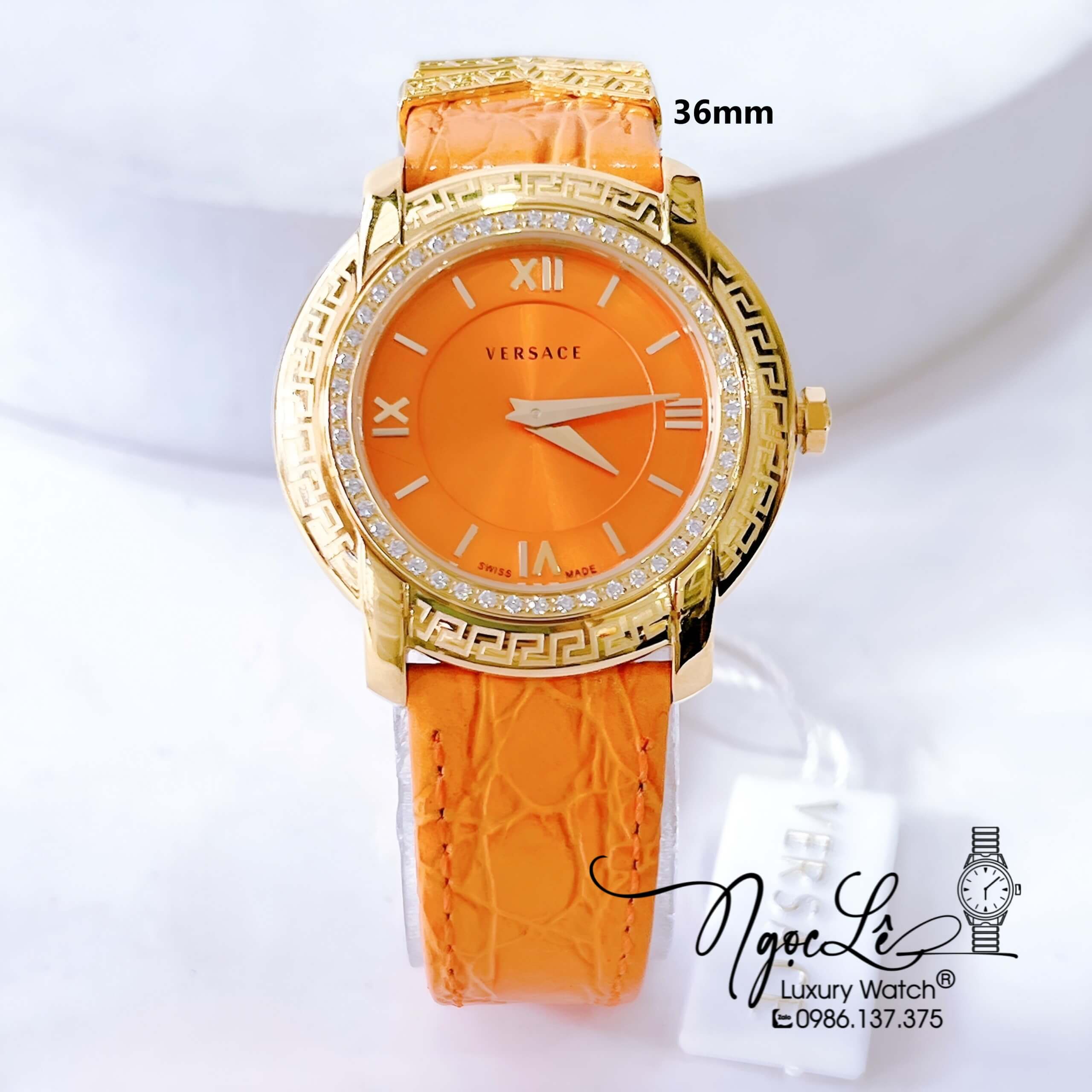 Đồng Hồ Nữ Versace DV-25 Máy Thụy Sỹ Dây Da Màu Cam Size 36mm Đính Đá