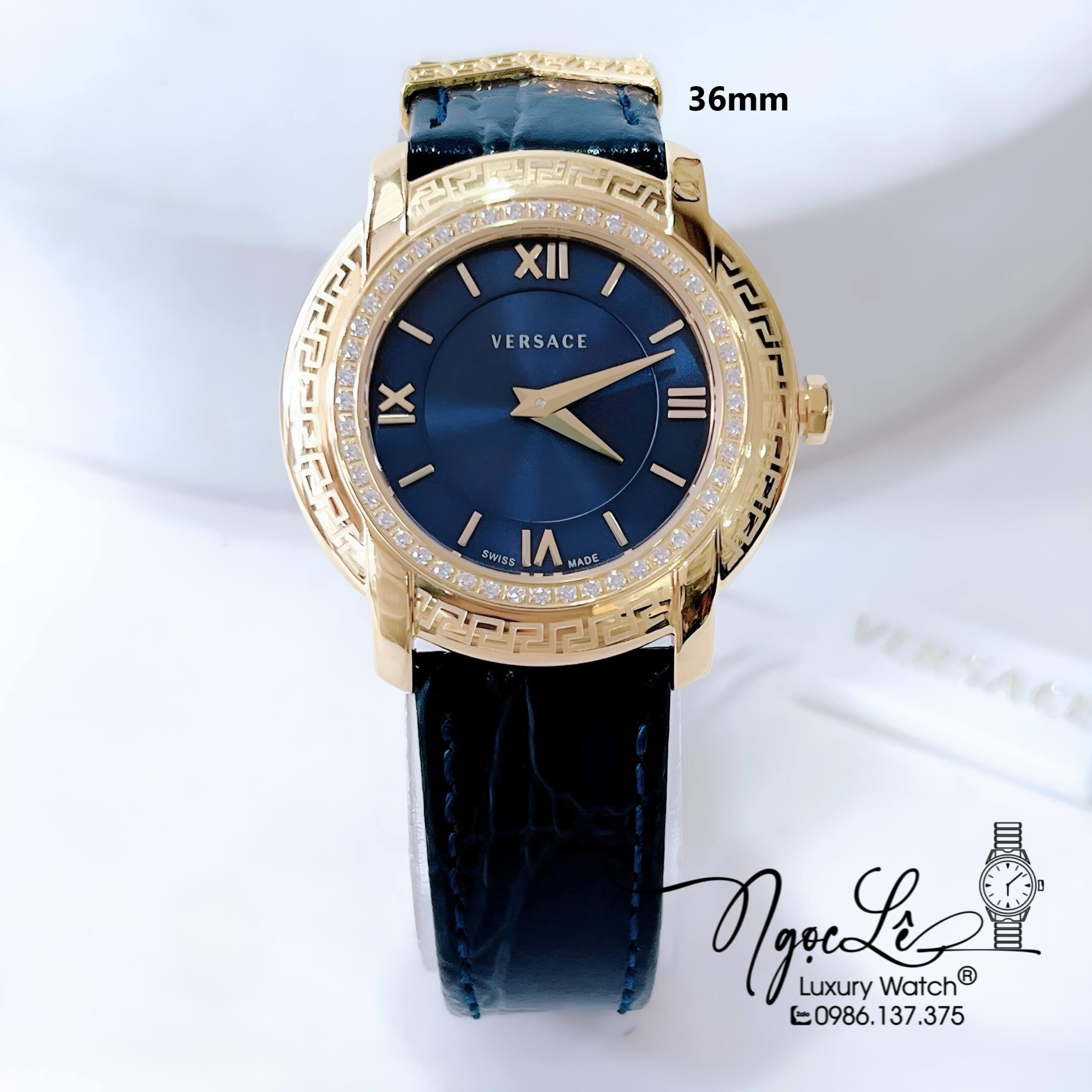 Đồng Hồ Nữ Versace DV-25 Máy Thụy Sỹ Dây Da Xanh Dương Đậm Size 36mm Đính Đá