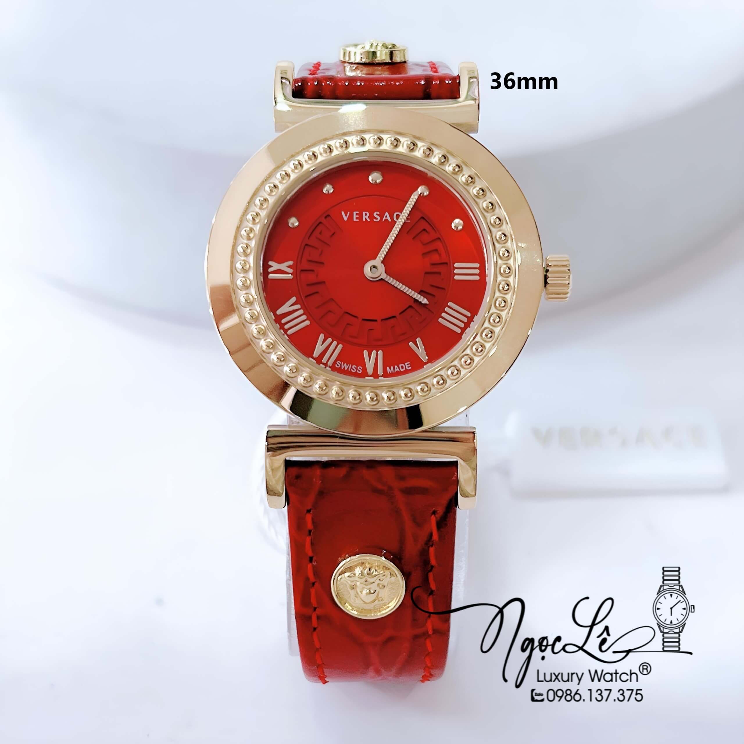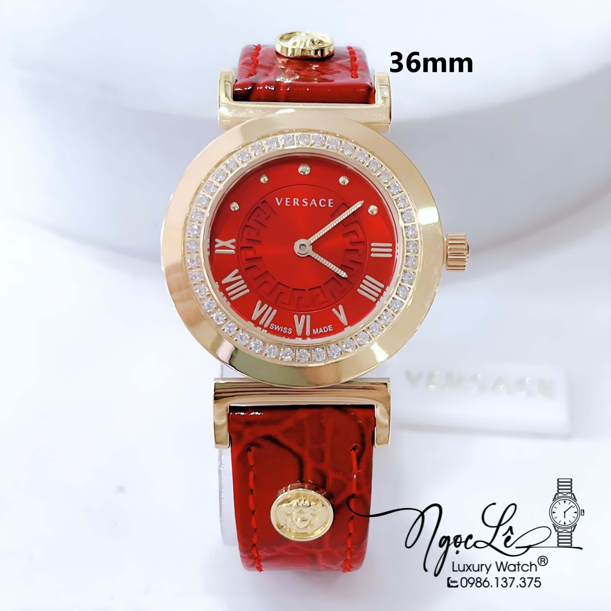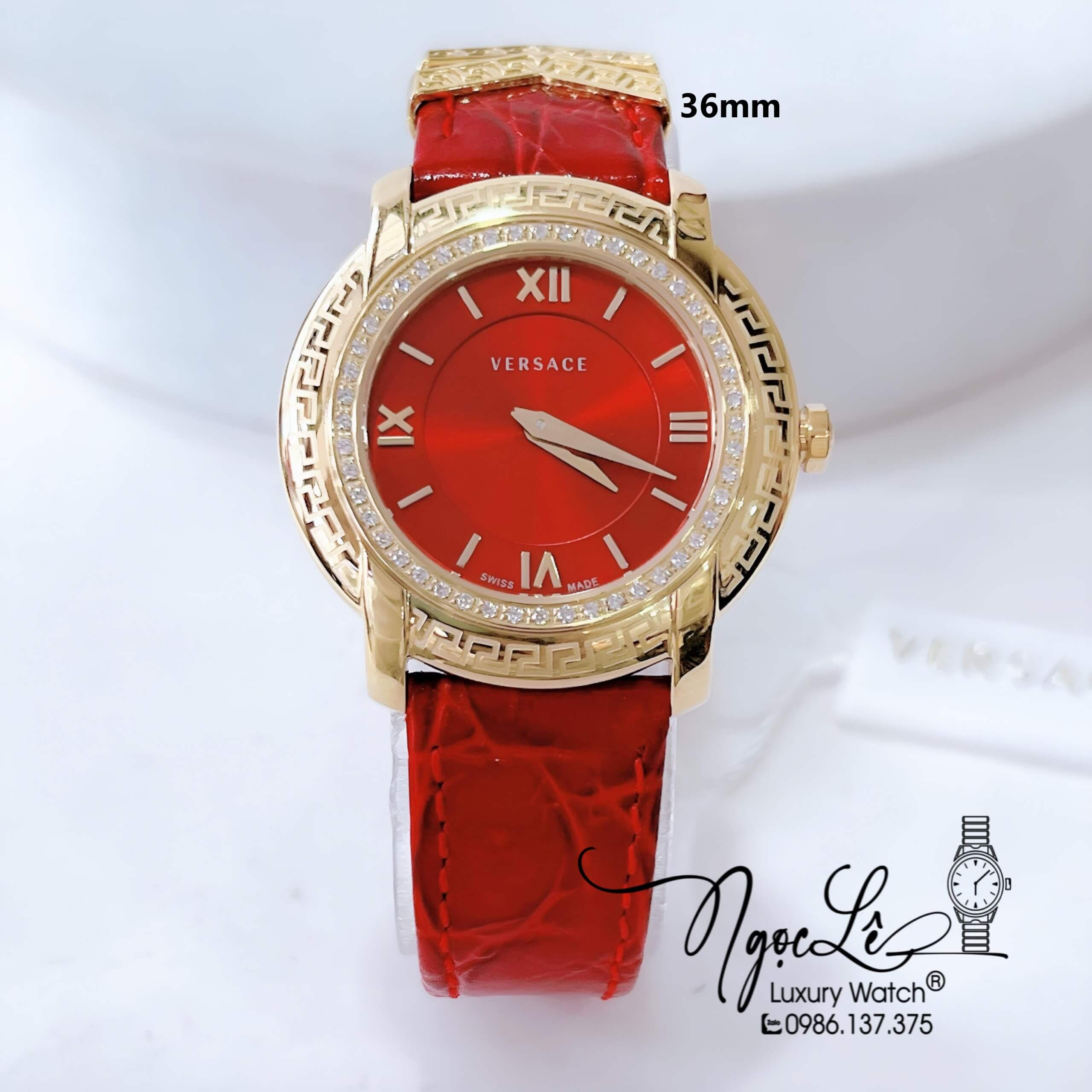 Đồng Hồ Nữ Versace DV-25 Máy Thụy Sỹ Dây Da Đỏ Size 36mm Đính Đá