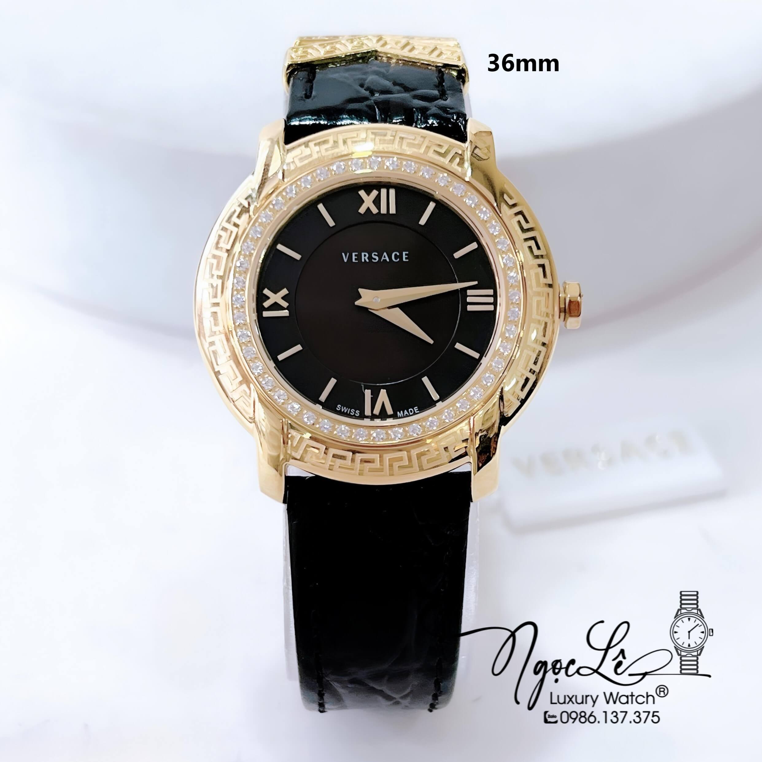 Đồng Hồ Nữ Versace DV-25 Máy Thụy Sỹ Dây Da Đen Size 36mm Đính Đá