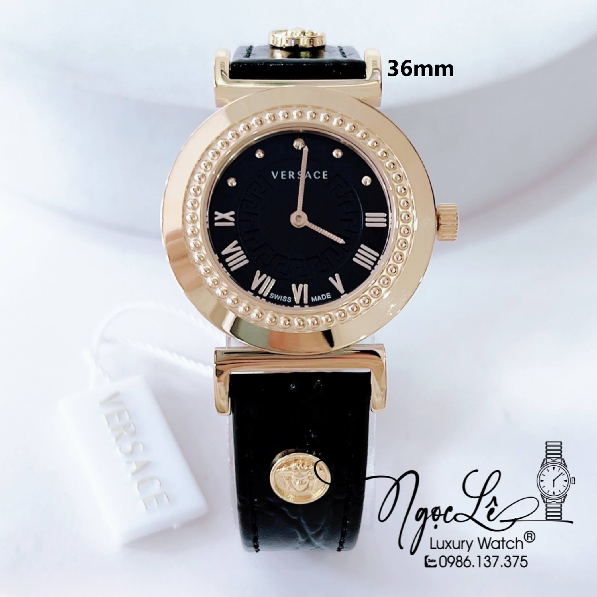 Đồng Hồ Nữ Versace Vanity Máy Thụy Sỹ Dây Da Đen Size 35mm