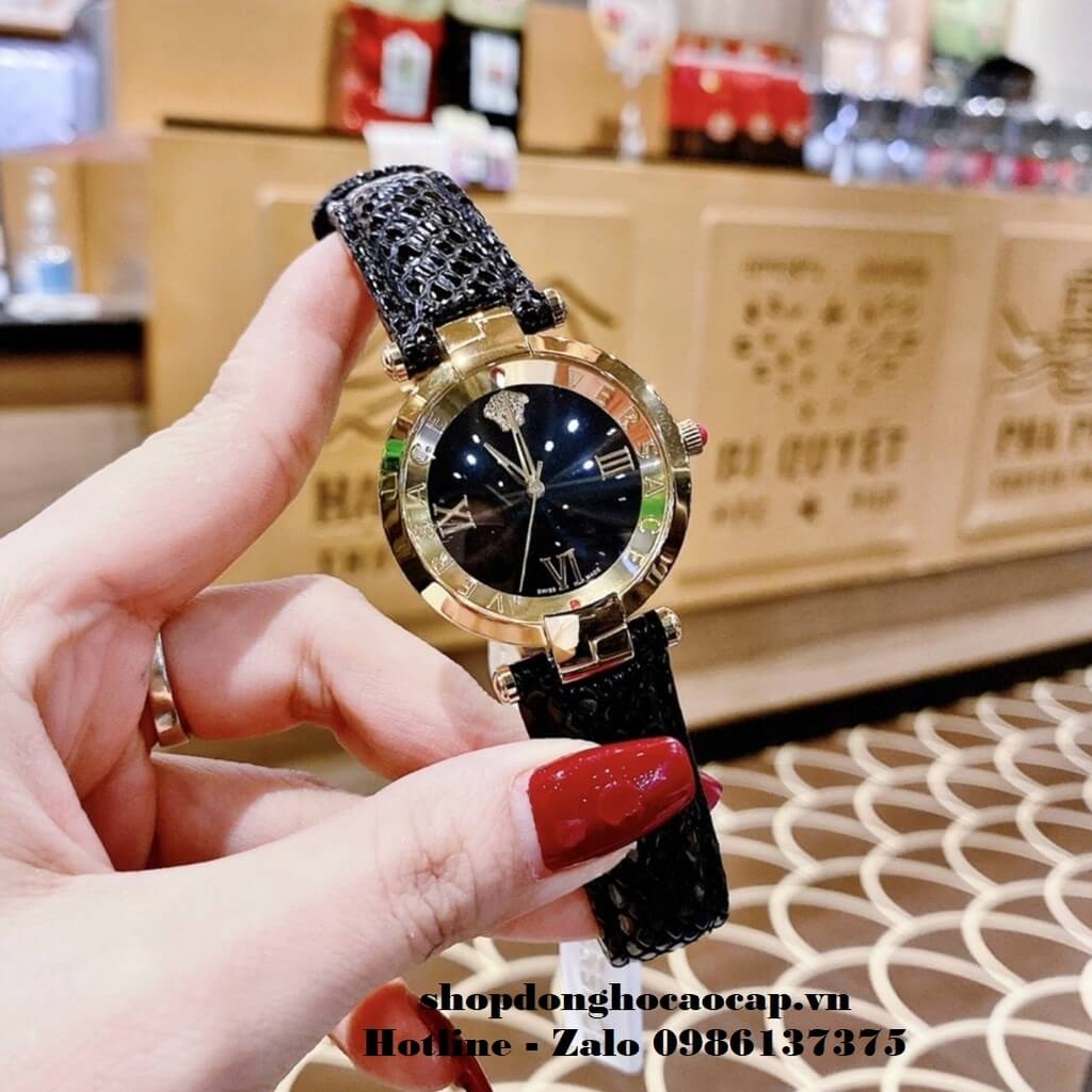Đồng Hồ Versace Revive Nữ Dây Da Đen 35mm Mặt Đen Gold