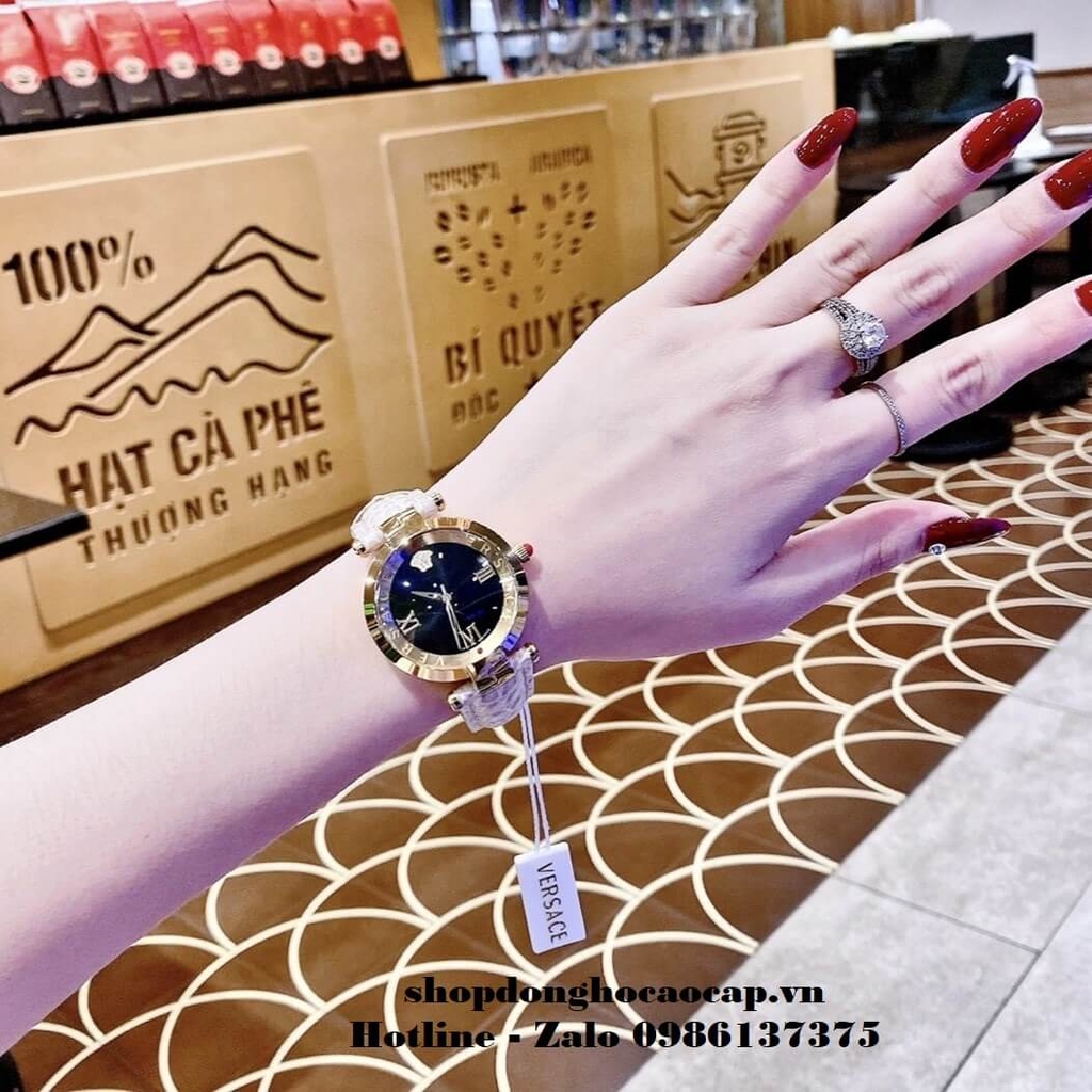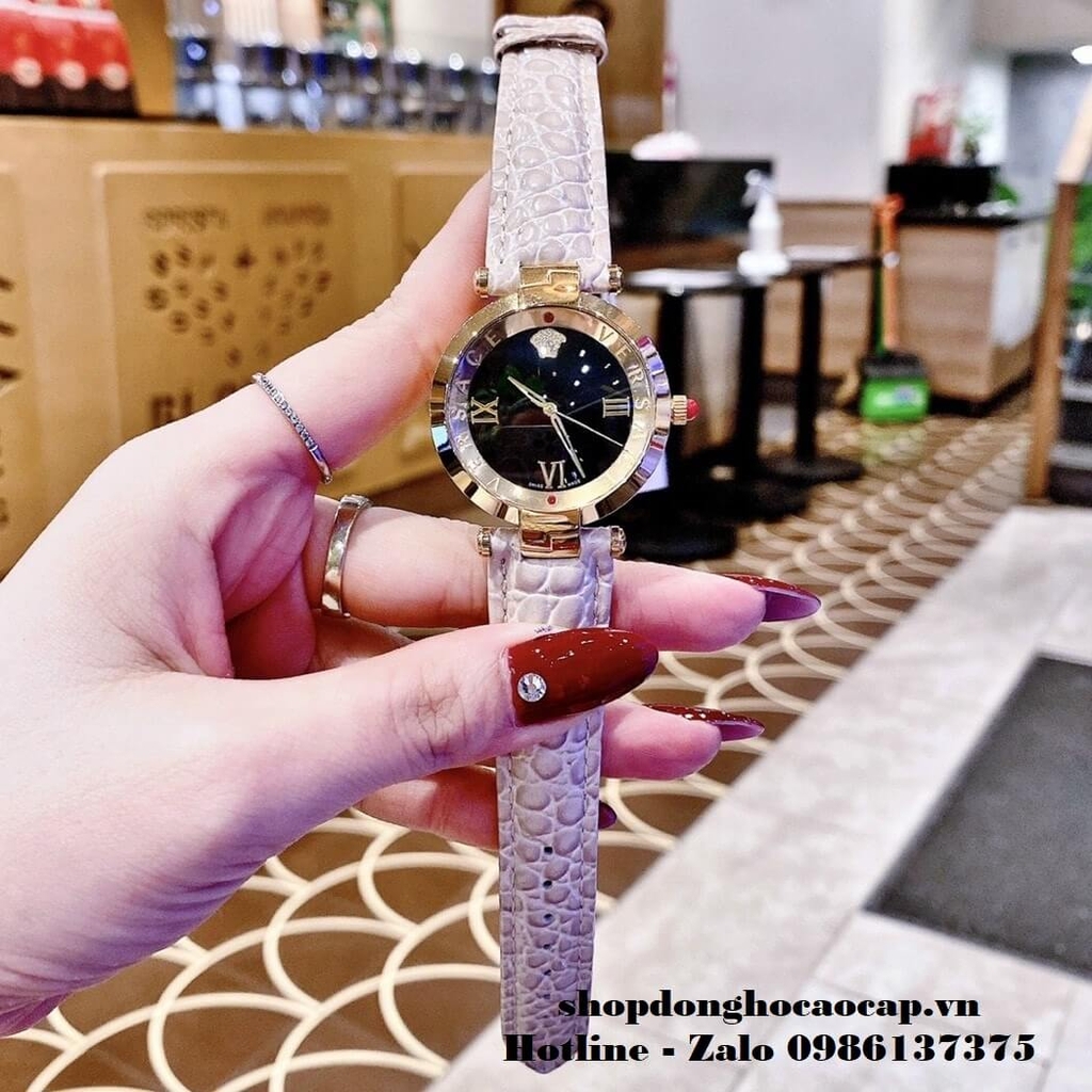 Đồng Hồ Versace Revive Nữ Dây Da Nude 35mm Mặt Đen Gold