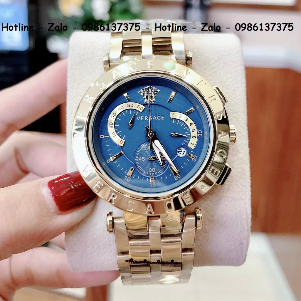 Đồng Hồ Versace V-Race Nam Siêu Cấp 6 Kim Vàng Mặt Xanh 45mm