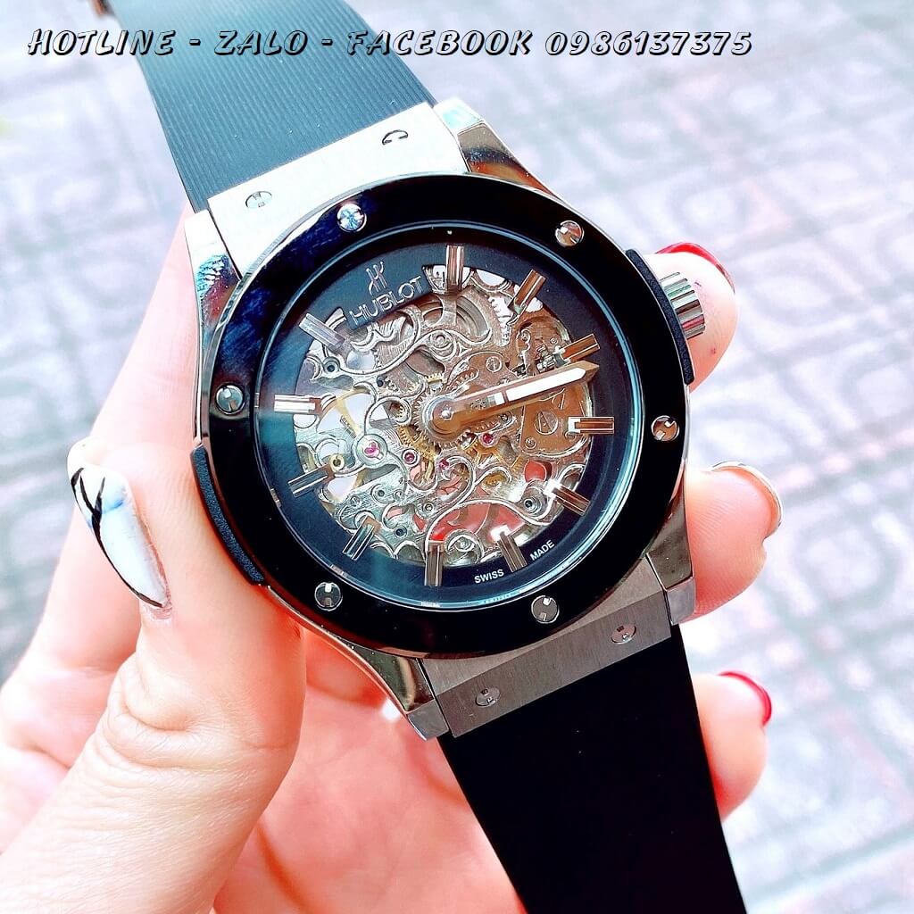 Đồng Hồ Nam Hublot Automatic Silicon Đen Vỏ Bạc 42mm Lộ Máy