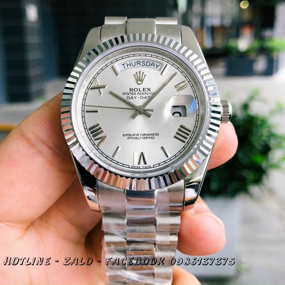 Đồng Hồ Nam Rolex Automatic Cơ Tự Động Demi Trắng 41mm