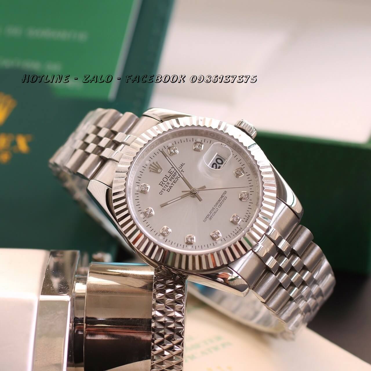 Đồng Hồ Nam Rolex Oyster Datejust Quartz Bạc Mặt Trắng 41mm