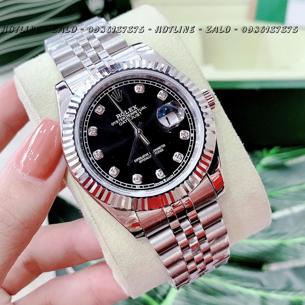 Đồng Hồ Nam Rolex Oyster Datejust Quartz Bạc Mặt Đen 41mm