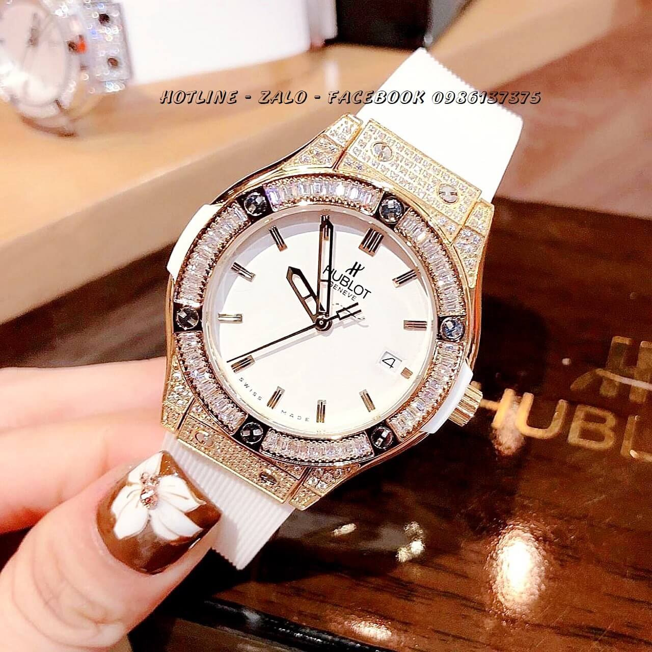 Đồng Hồ Hublot Nữ Dây Silicon Trắng 34mm (Gold)