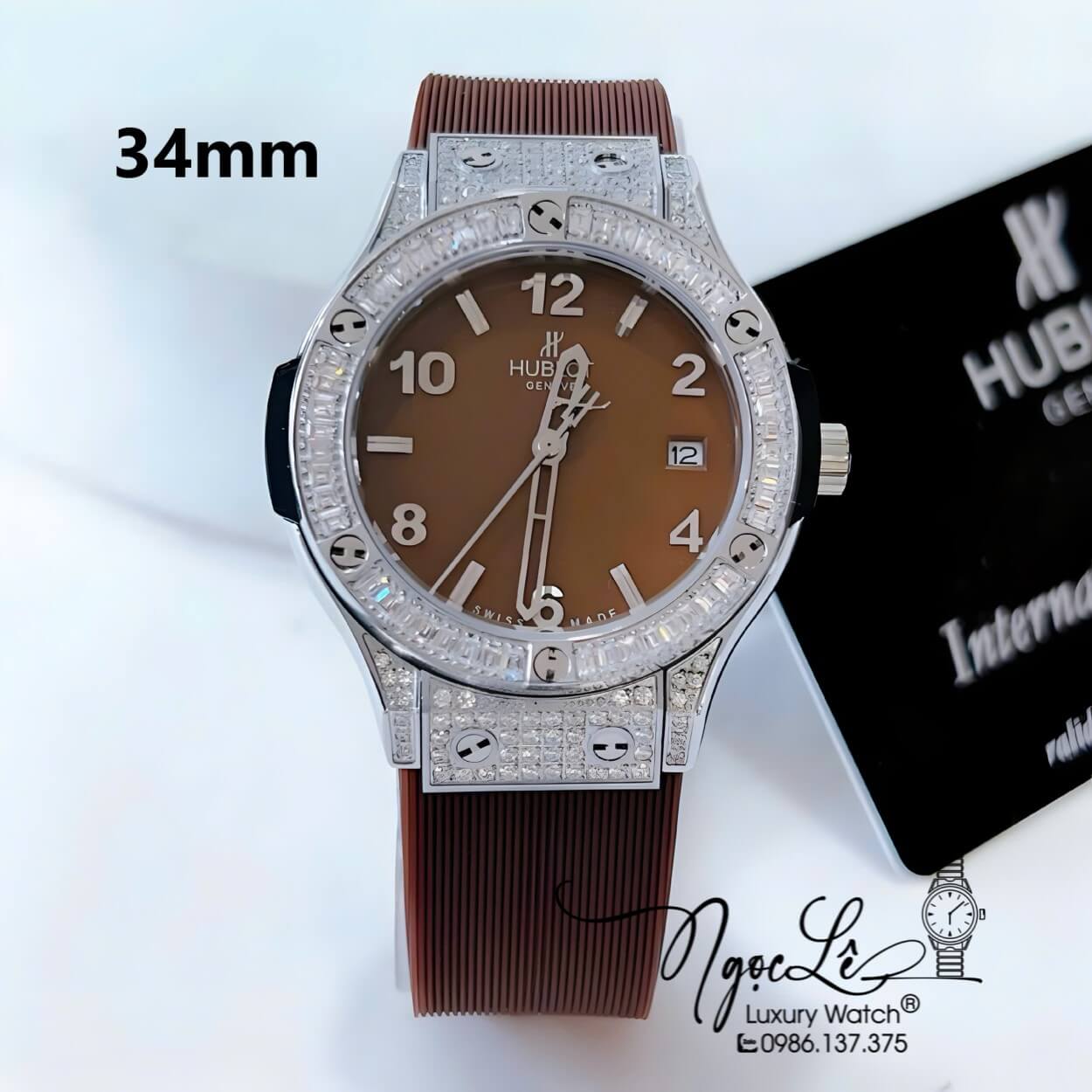 Đồng Hồ Nữ Hublot Classic Fusion Cao Su Màu Nâu Đính Đá Vỏ Silver Size 34mm - Máy Quartz