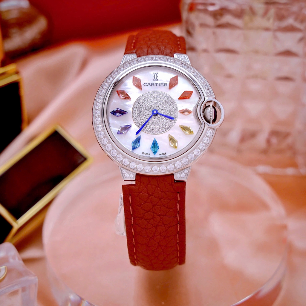• Ballon Bleu de Cartier: Ra mắt vào năm 2007, Ballon Bleu mang dáng vẻ tròn trịa mềm mại với núm vặn hình quả bóng, làm nổi bật sự khác biệt trong thiết kế của Cartier. Mẫu đồng hồ này được ưa chuộng bởi cả nam và nữ nhờ vào thiết kế thanh lịch và sang trọng.